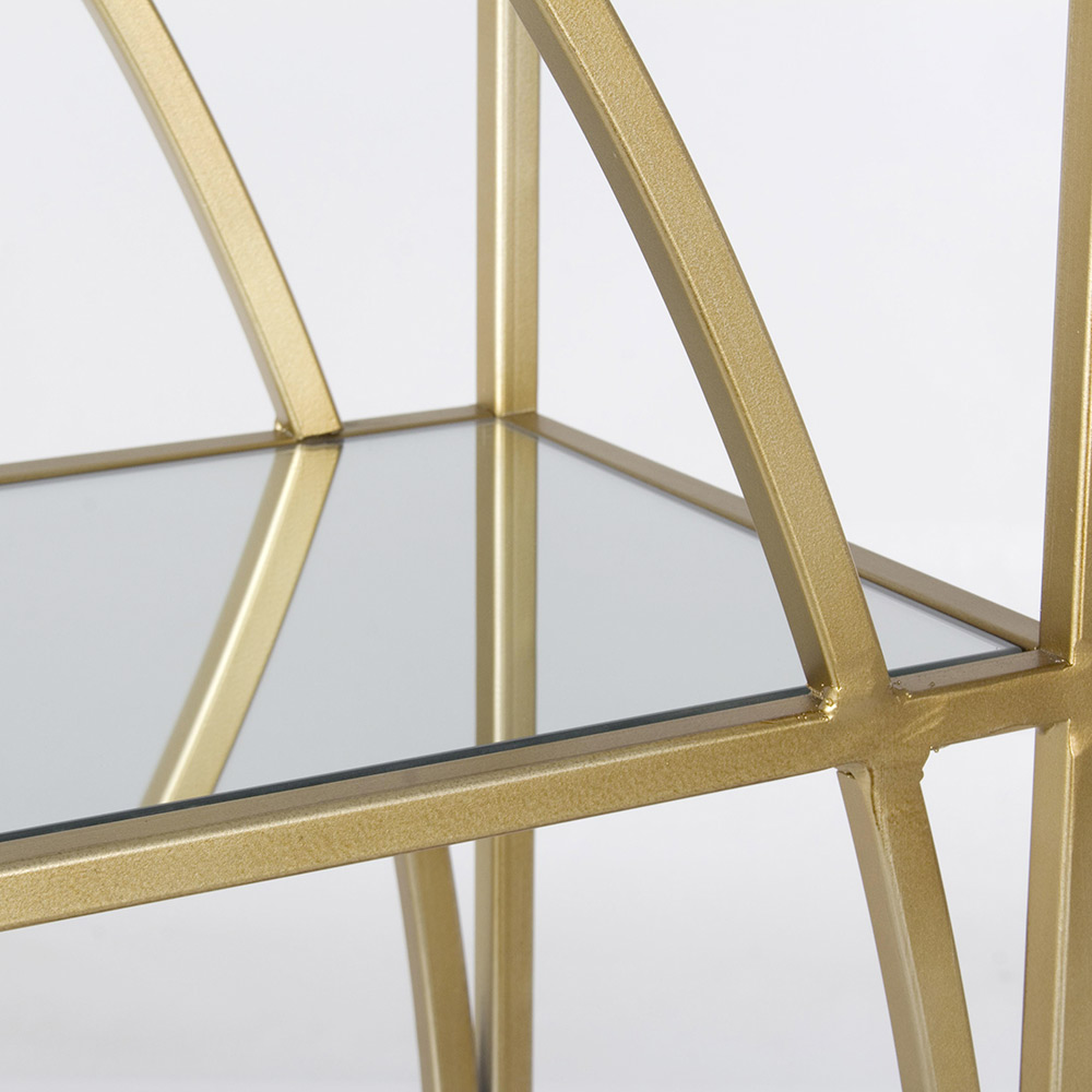 This freestanding bookcase features an epoxy powder coated steel structure and glass shelves .
