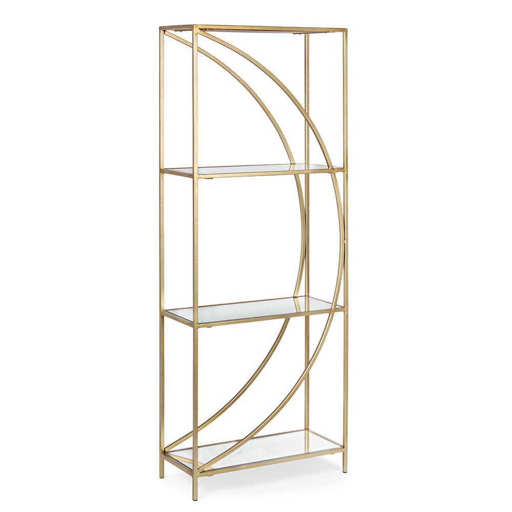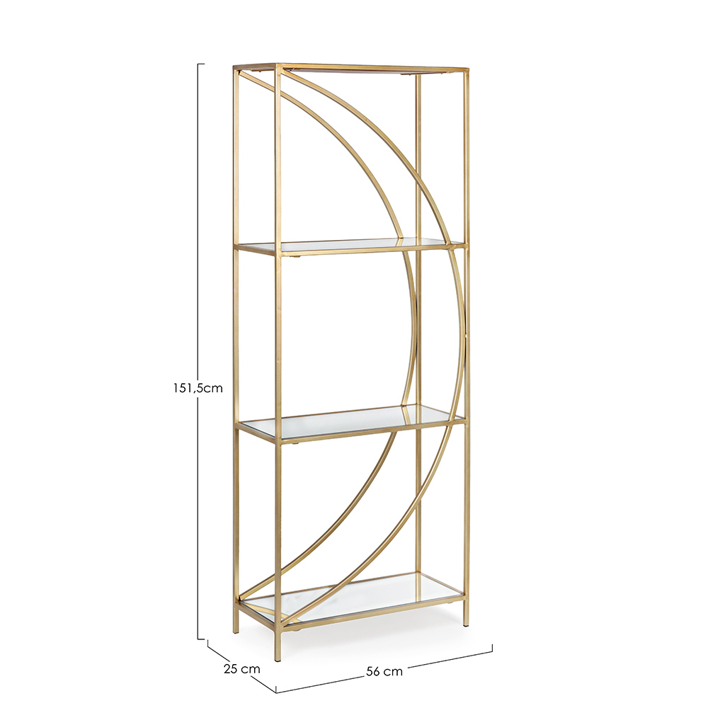 High freestanding steel bookcase and 3 glass shelves of elegant design.