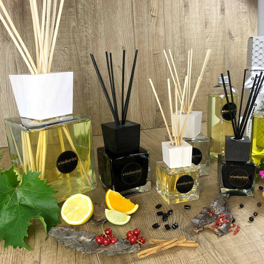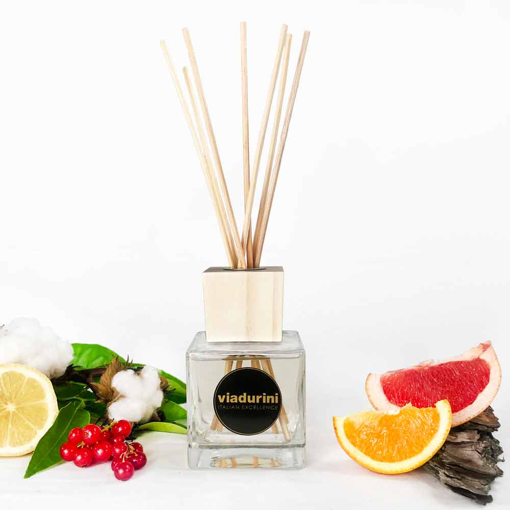 Air freshener with fruity fragrance of cotton and hemp with sticks - Made in Italy essence.