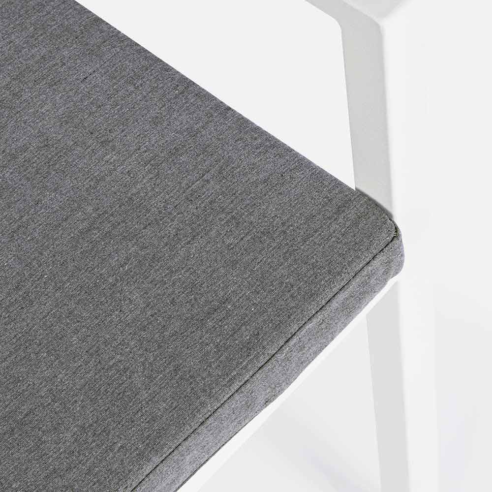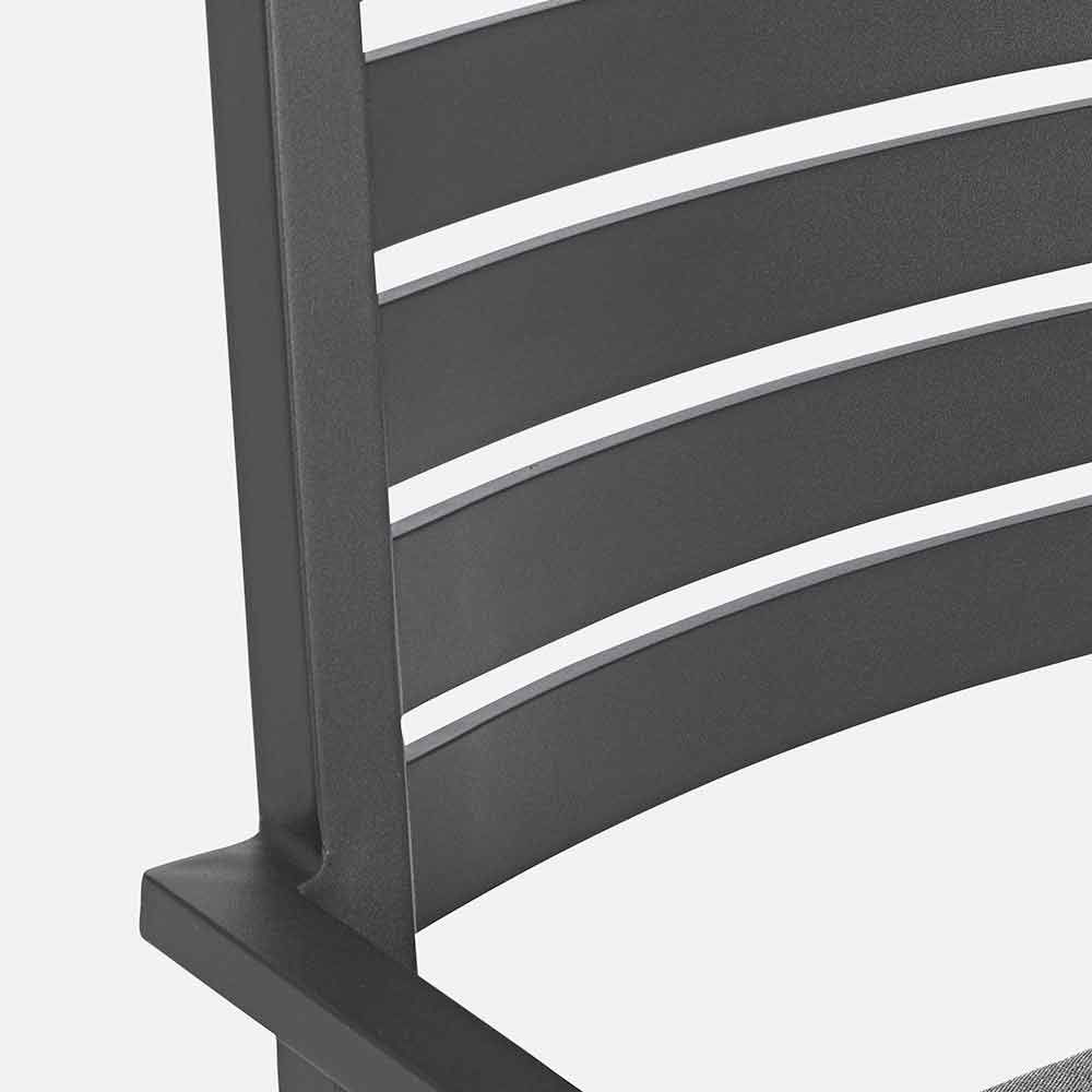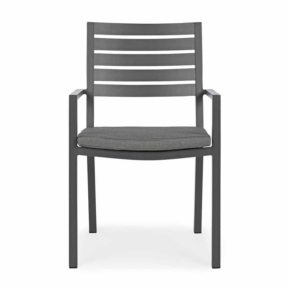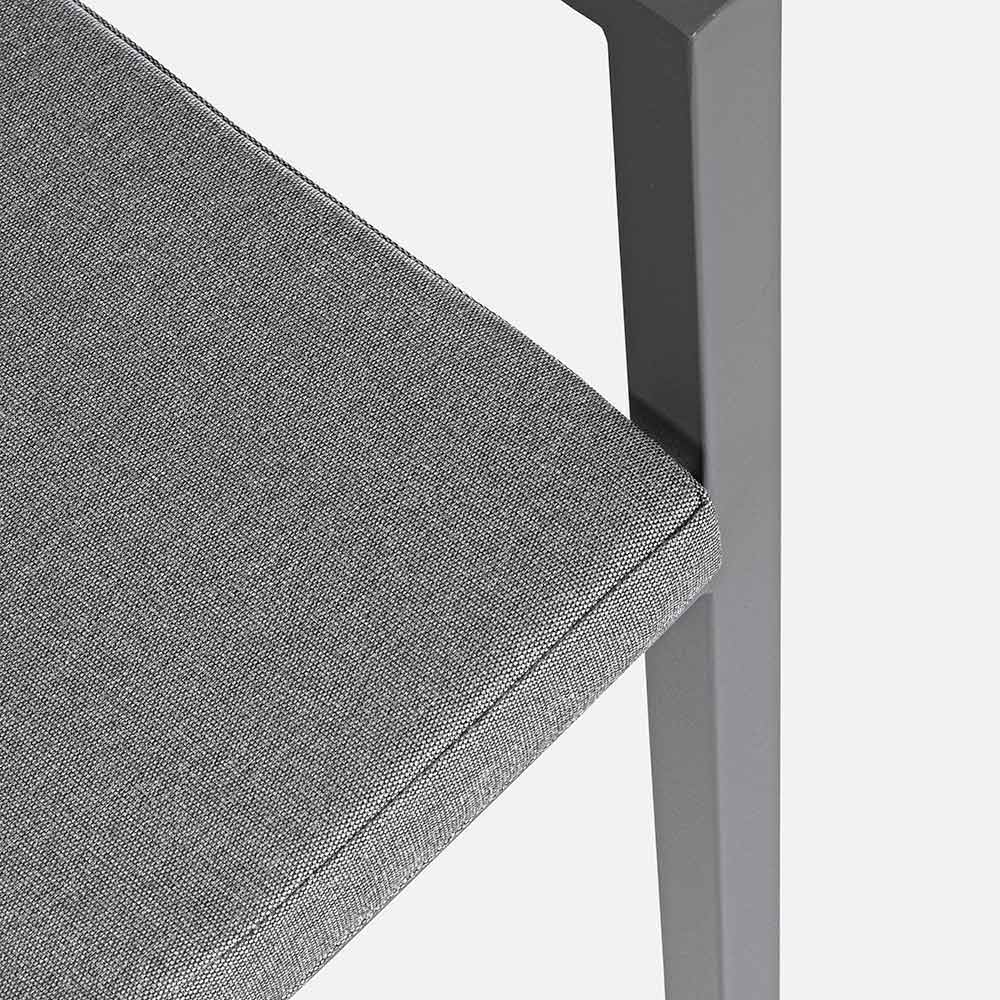 Aluminum frame, powder coated (polyester), removable cushions with Spun Poly fabric (polyester). Stackable . Structure finishes available: