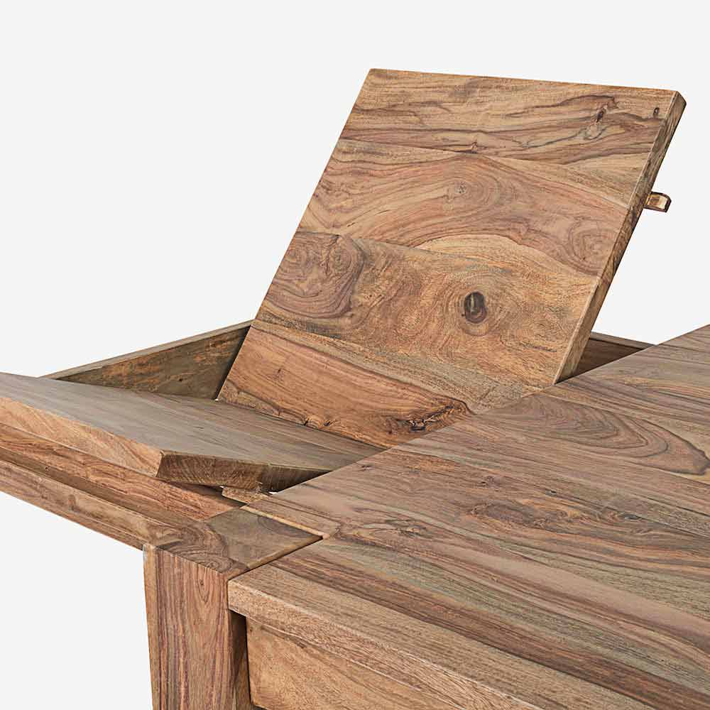 in natural finish. Two integrated extensions with butterfly opening of 50 cm each.