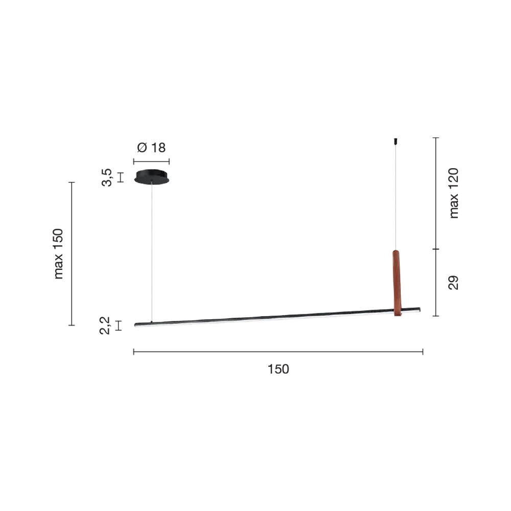 Fixed dimensions:- base in the ceiling: diameter 18cm x height 3.5cm