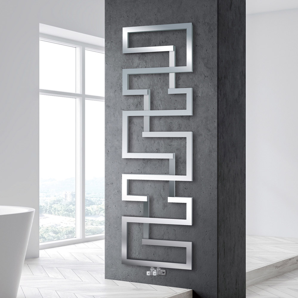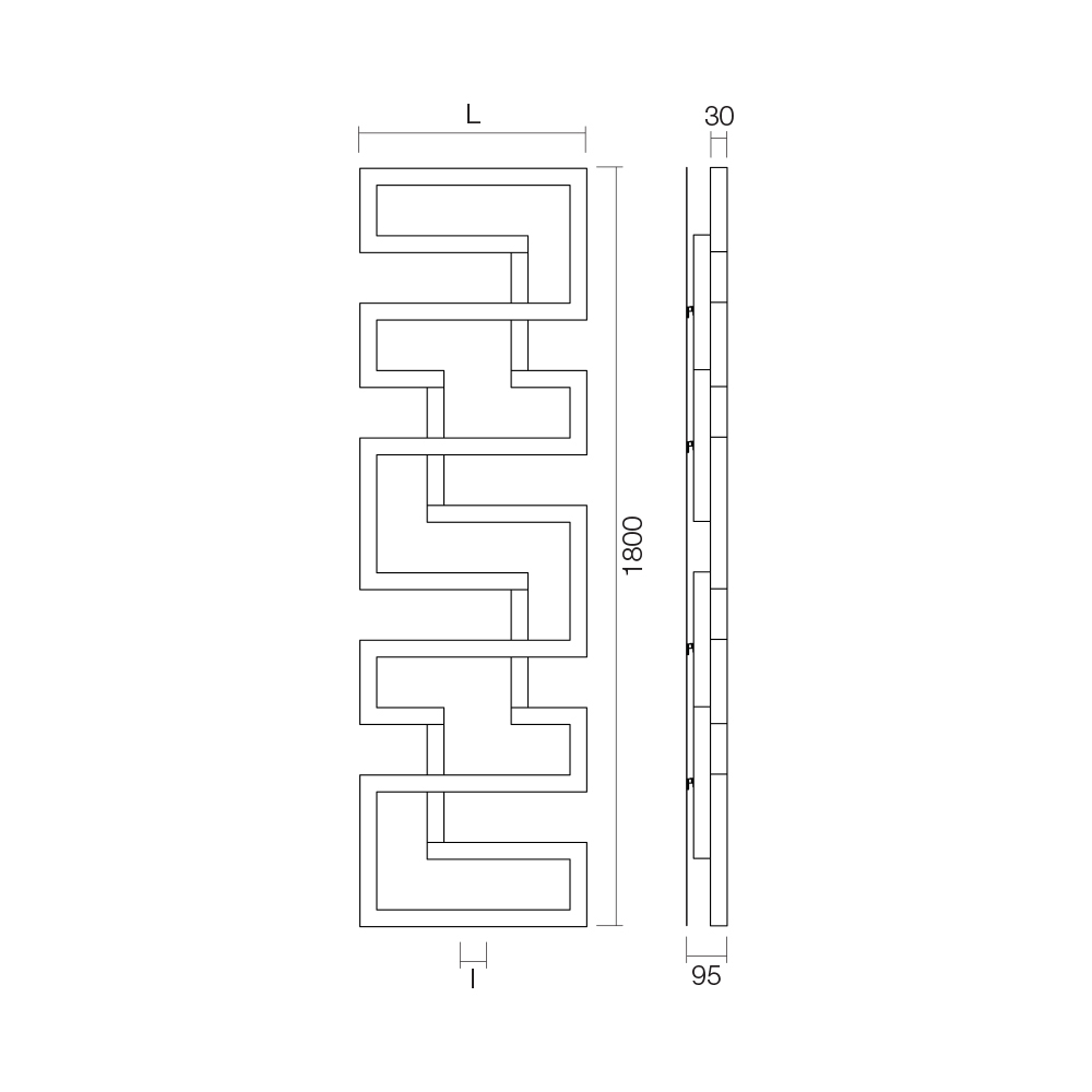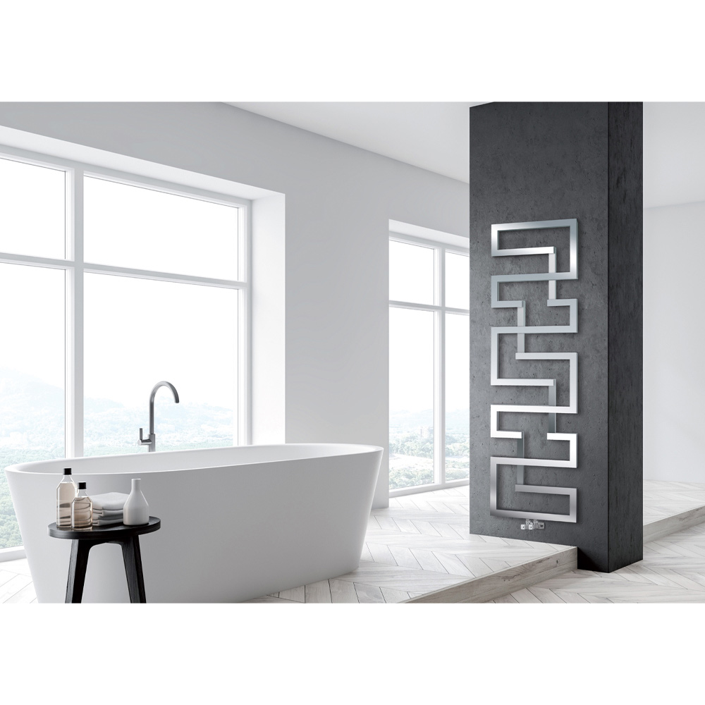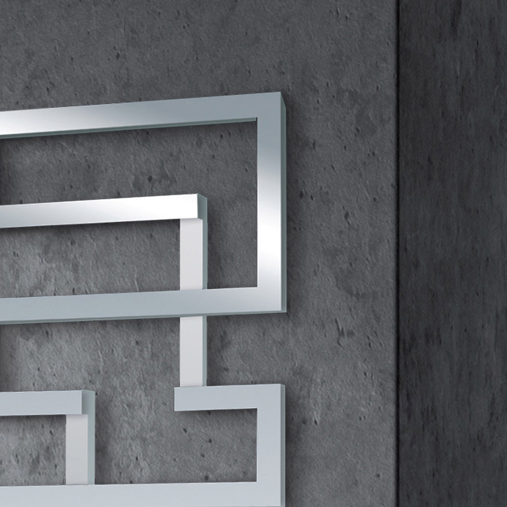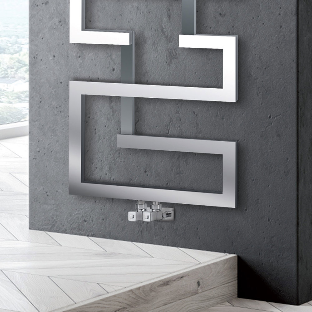 Hydraulic radiator in chrome-finish stainless steel made up of 3 cm square section elements entirely made in Italy with wall fixing kit, vent valve and blind plug included .
