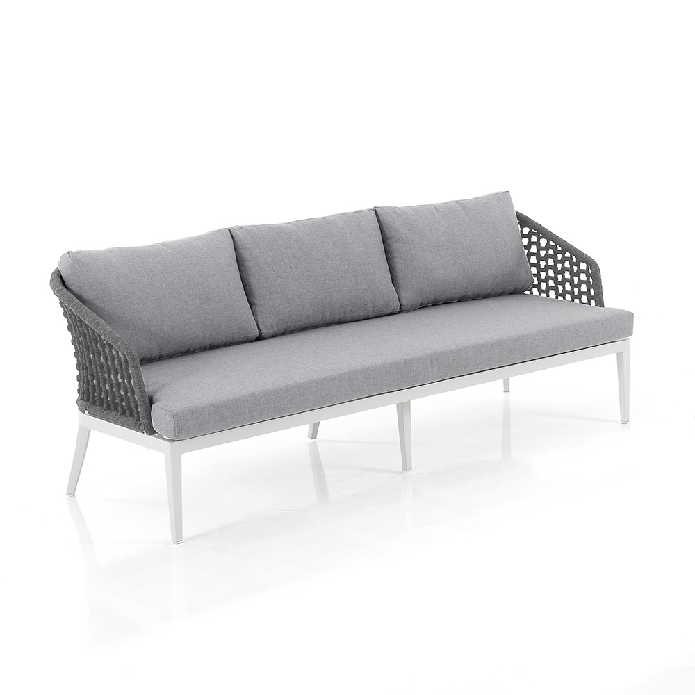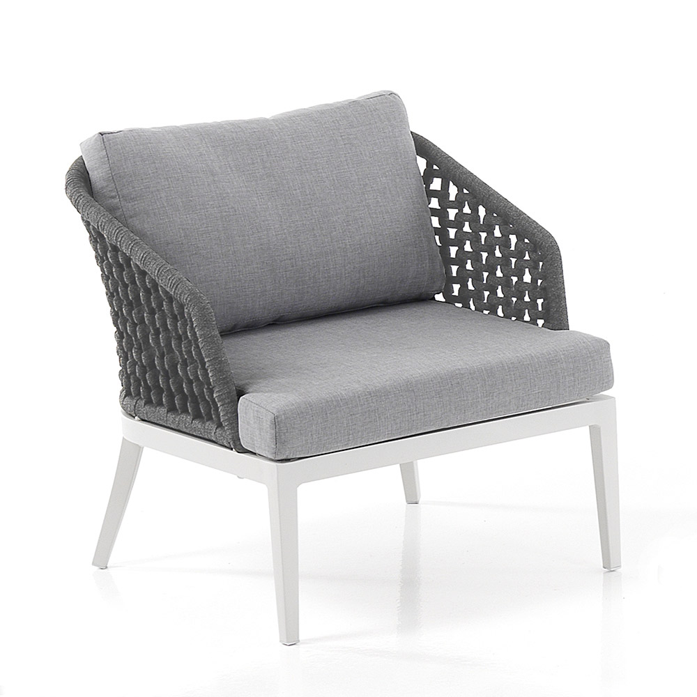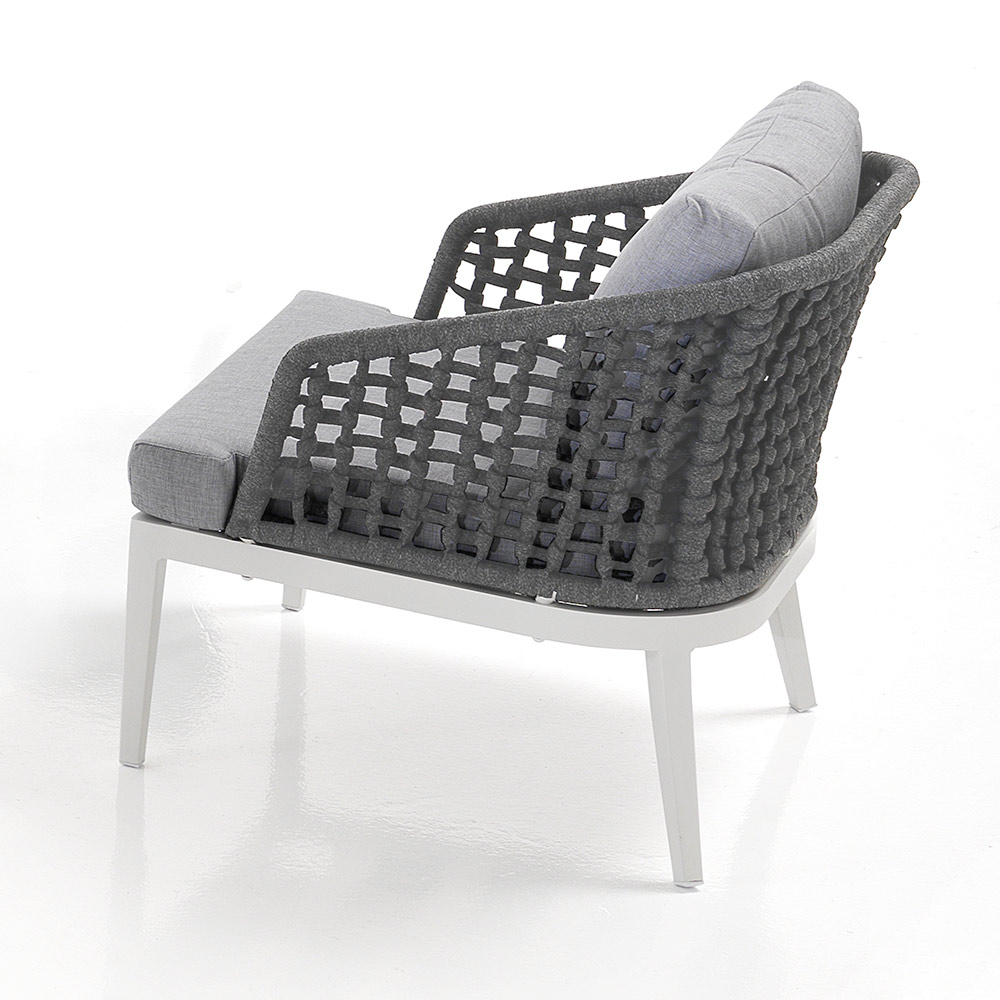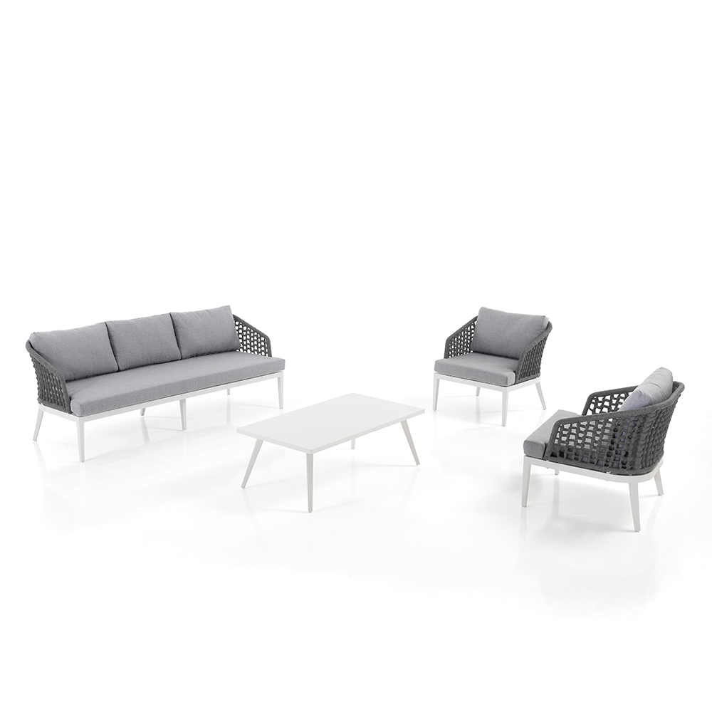 This lounge with coffee table for the garden is an example of refined design and comfort . The combination of the armchairs and the sofa with their weaving on an aluminium structure gives an elegant and contemporary look, perfect for adding a touch of class to any outdoor space.
