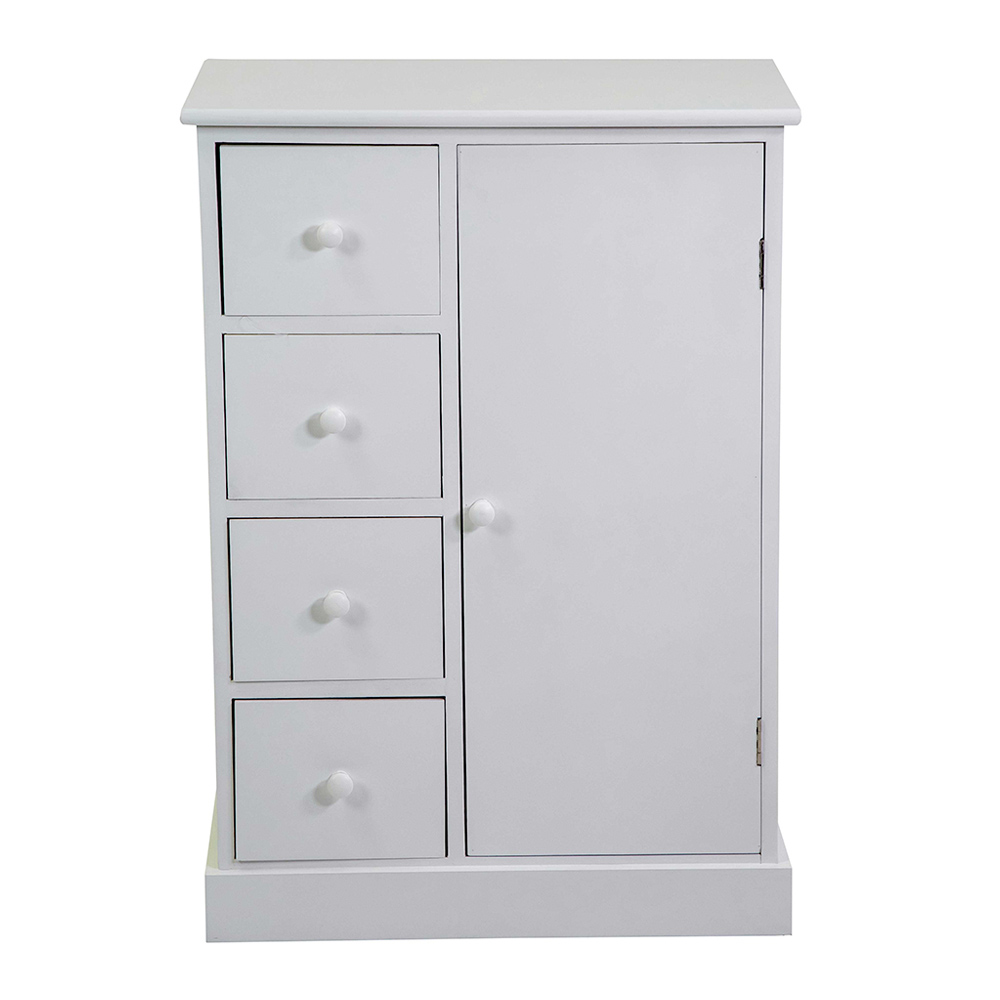 With 4 side drawers and 1 door , it offers a large storage solution perfect for storing everyday items, utensils, textiles or documents, keeping everything tidy and out of sight. The clean queues and minimal design make it extremely versatile : perfect for lounges, bedrooms, bathrooms or entrances.