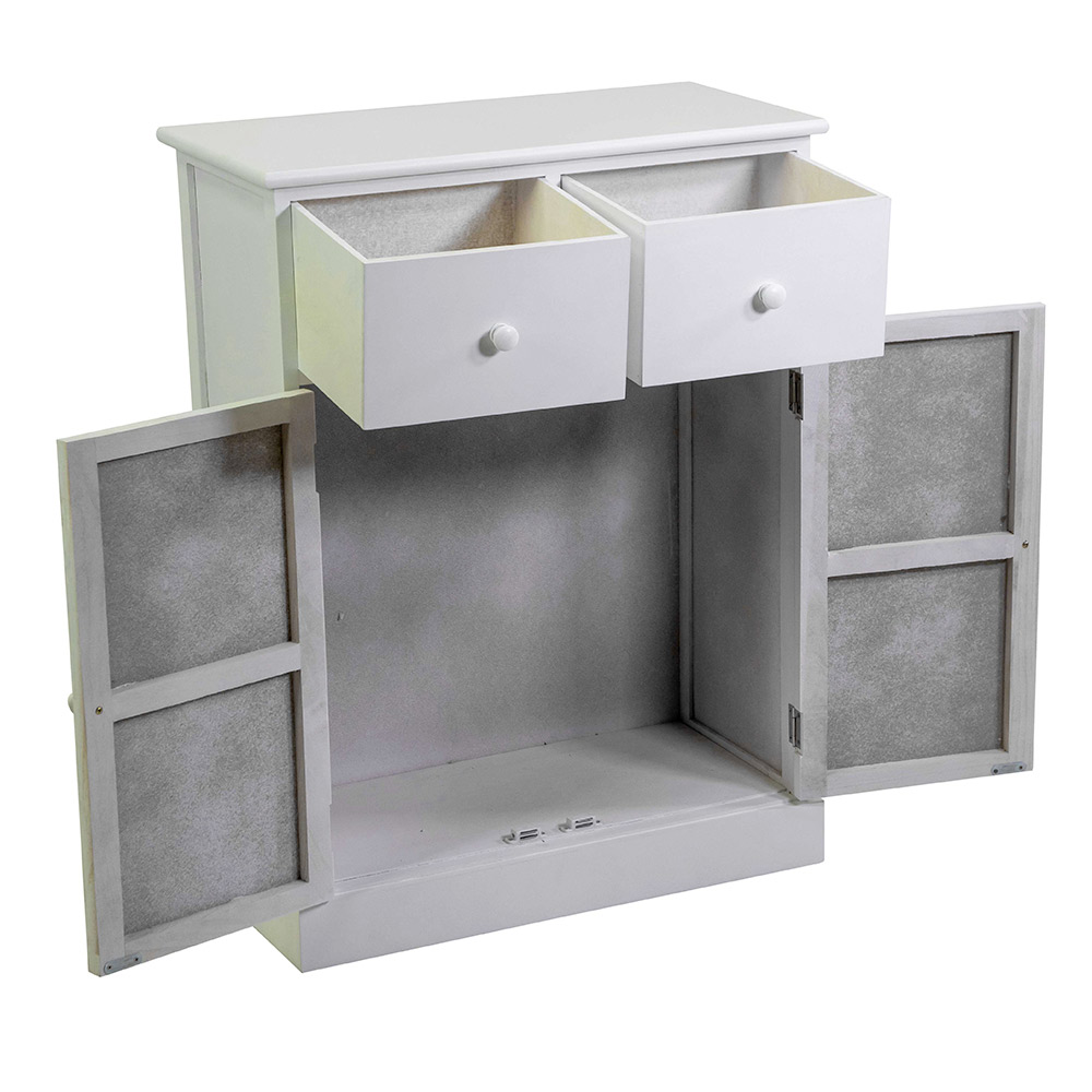 With two upper drawers and two lower doors , it offers a large storage solution perfect for storing everyday items, utensils, textiles or documents, keeping everything tidy and out of sight. The clean queues and minimal design make it extremely versatile : perfect for lounges, bedrooms, bathrooms or entryways.