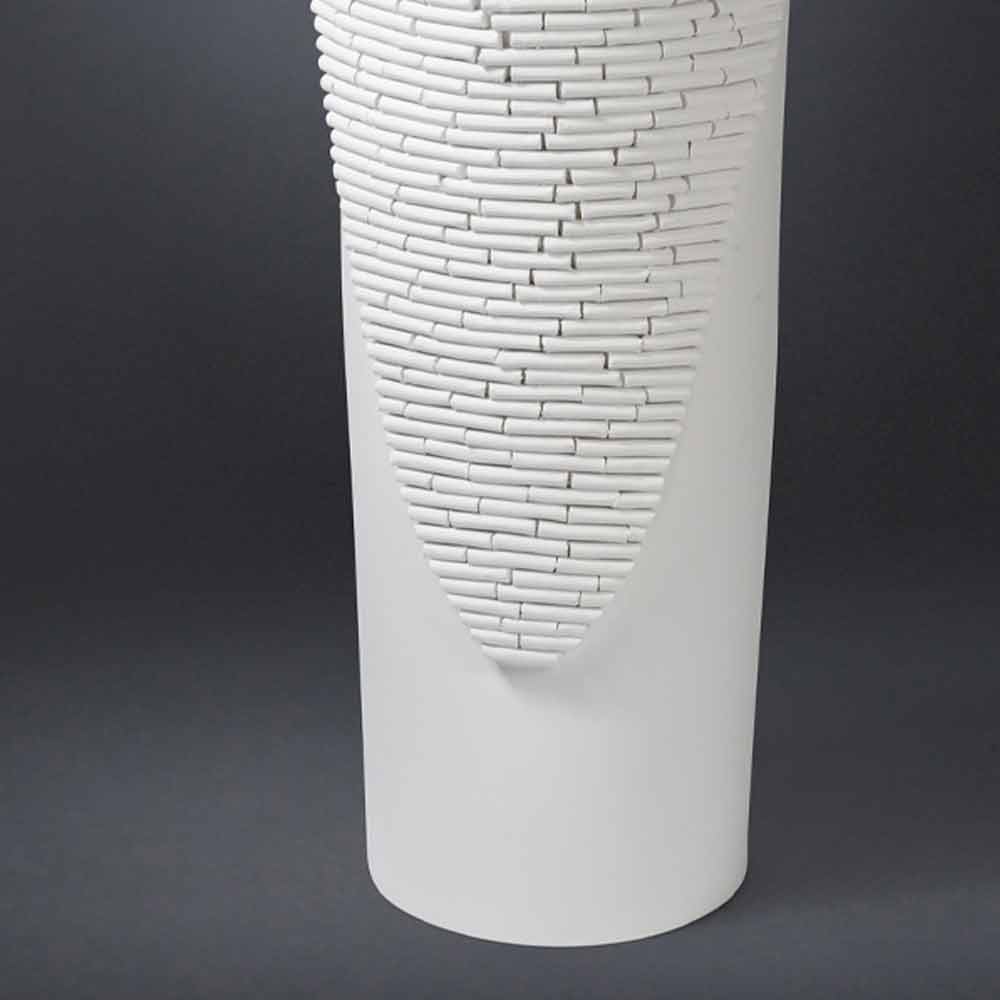 Tall decorative vase in matt white ceramic handmade in Italy.