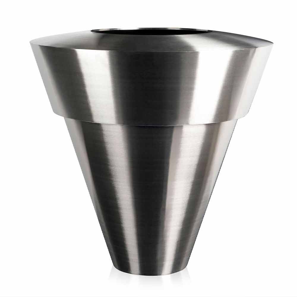 Elegant vase for interiors in brushed steel made in Italy.