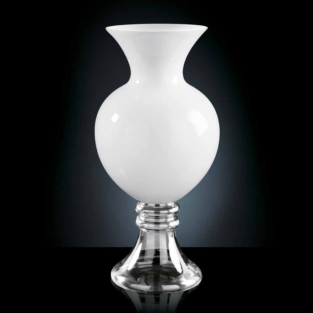 Elegant vase for interiors in white and transparent glass Made in Italy.