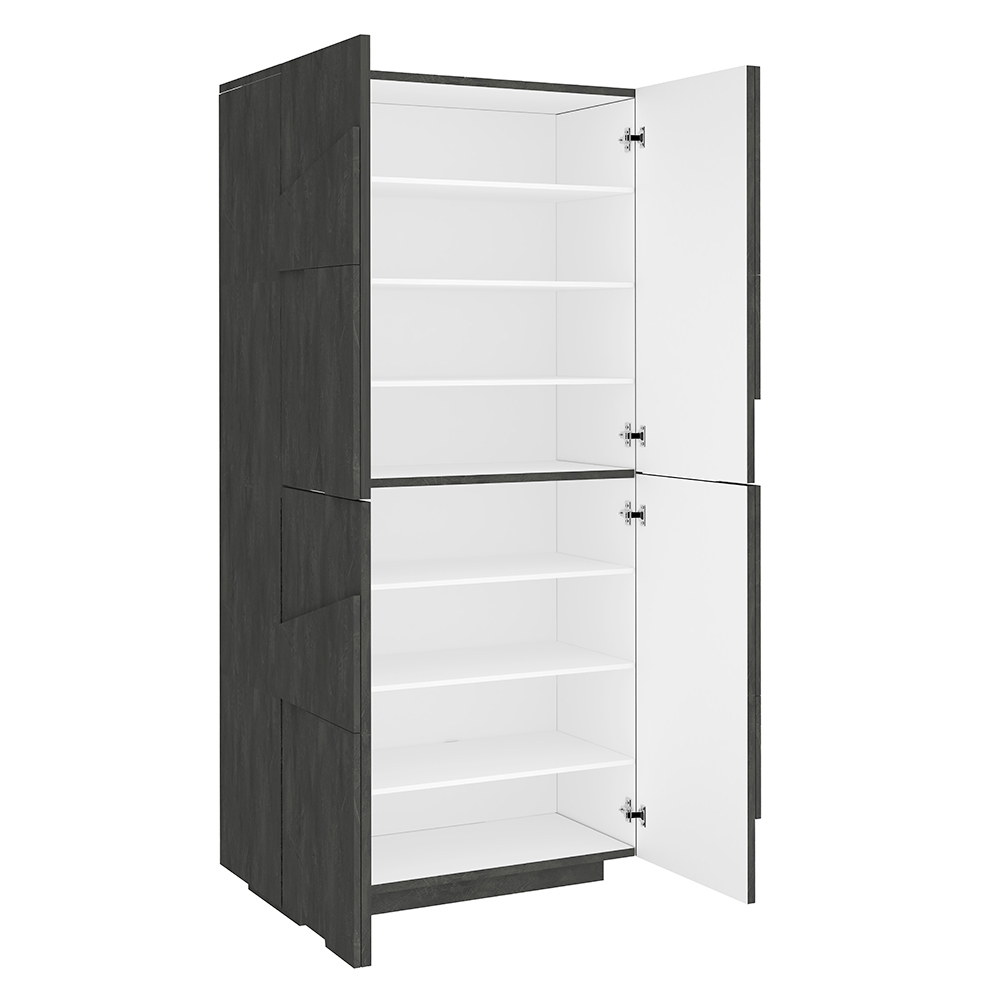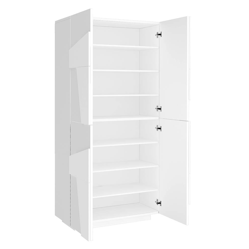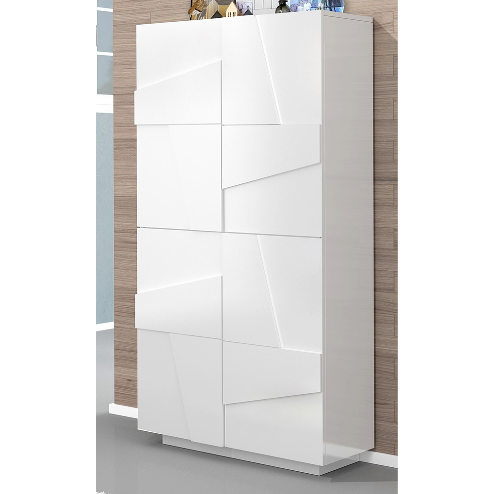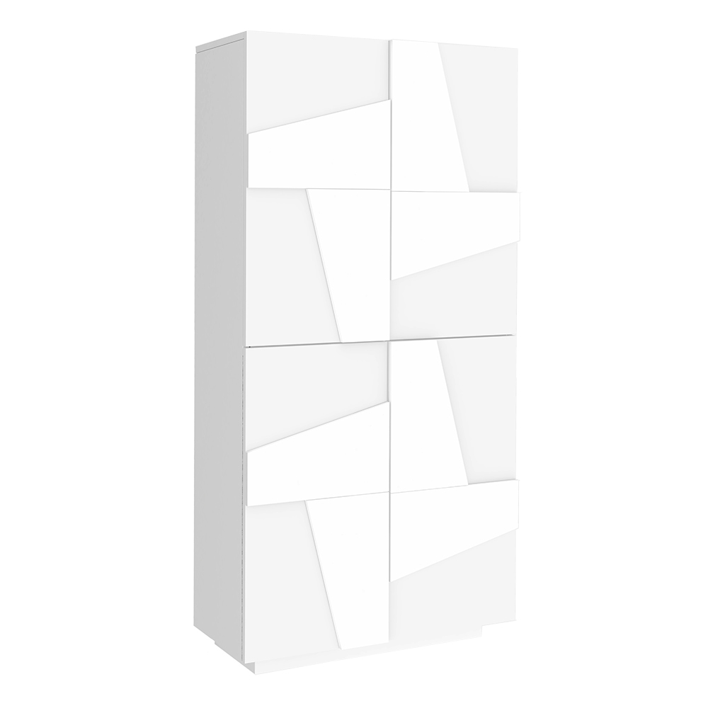 The shoe cabinet is composed of 4 hinged doors made special by the geometric carving in relief on the surface, closing 8 container compartments , which guarantee large storage space. It is made of melamine and 100% Made in Italy . This product lends itself to completing the decor of any living area thanks to its simple and elegant finishes that give the environment a unique and unforgettable touch. The material used guarantees quality and resistance even over time.