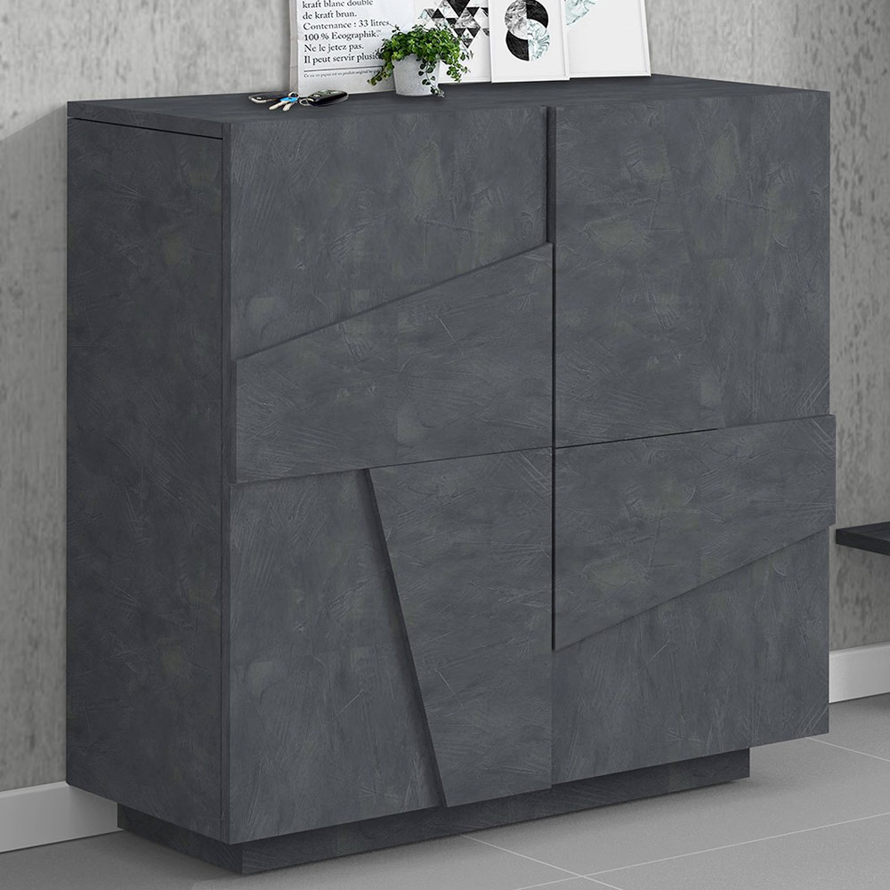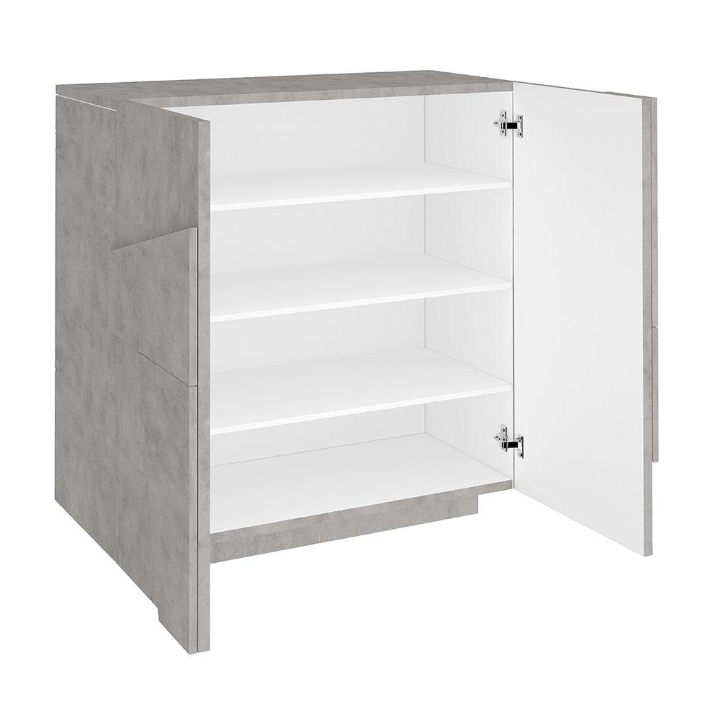 The shoe rack is composed of 2 hinged doors made special by the geometric carving in relief on the surface, closing 4 container compartments , which guarantee large storage space. It is made of melamine and 100% Made in Italy . This product lends itself to completing the decor of any living area thanks to its simple and elegant finishes that give the environment a unique and unforgettable touch. The material used guarantees quality and resistance even over time.