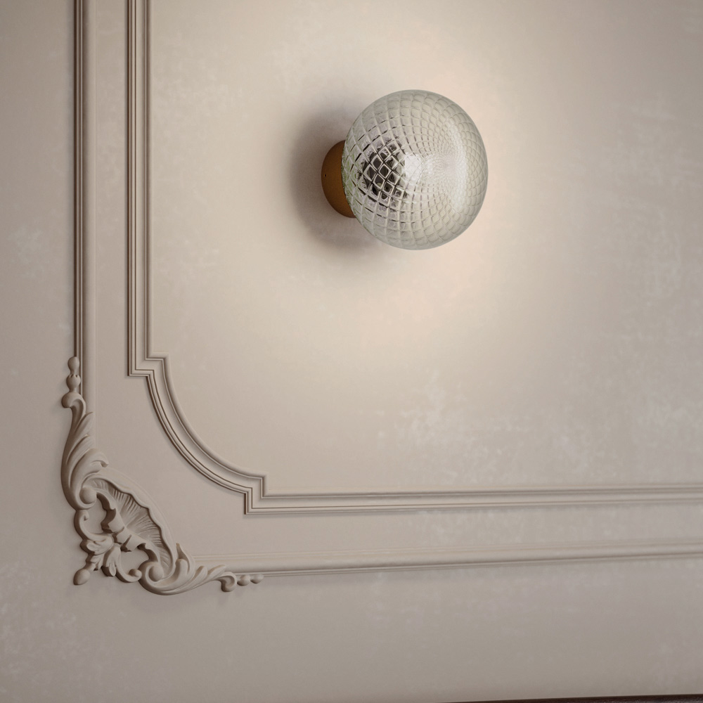 Made in Italy. The collection of lamps recalls the preciousness of perfume bottles and oriental essence diffusers. The type of glass gives life to different light effects, more muffled or more sensual. The magic of the object is alive both in the single piece and in the combination of multiple variations. The collection consists of pendant, table and wall lamps.