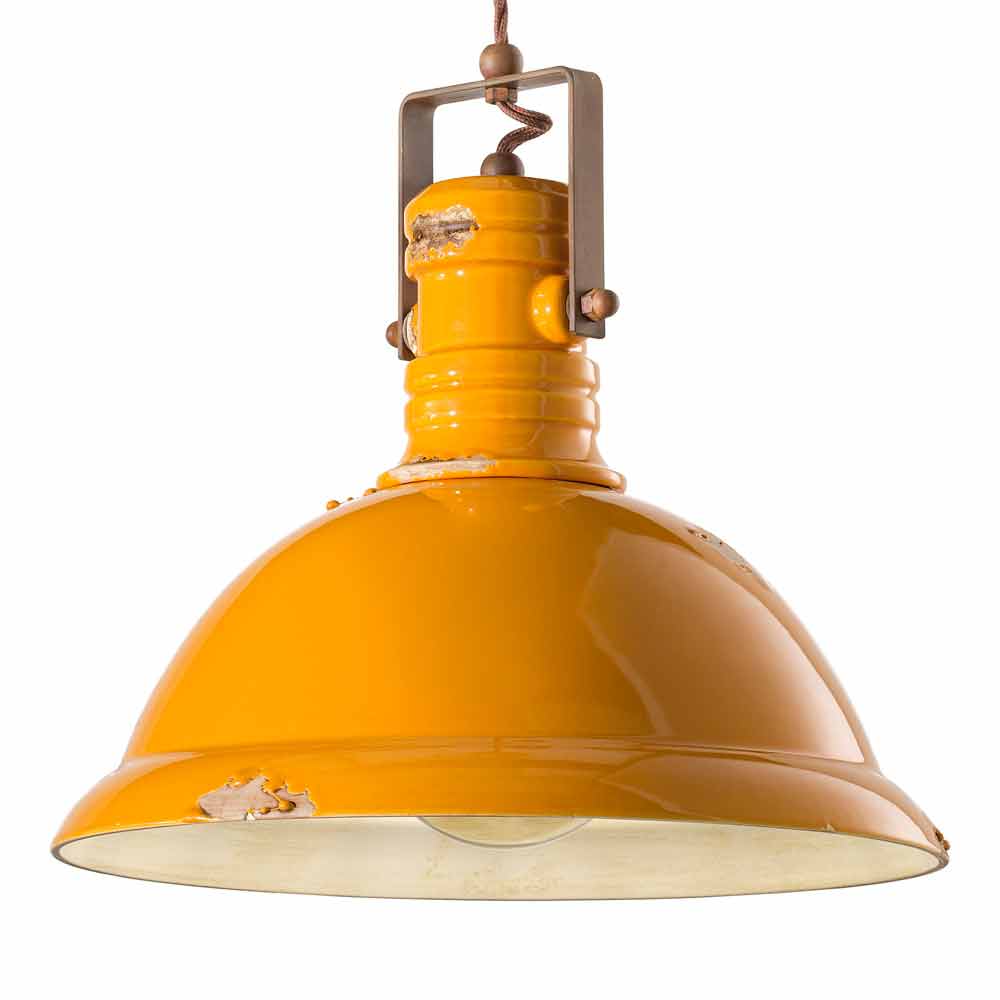 This beautiful lamp consists of an iron structure with a diffuser made of glossy ceramic, available in different colours.