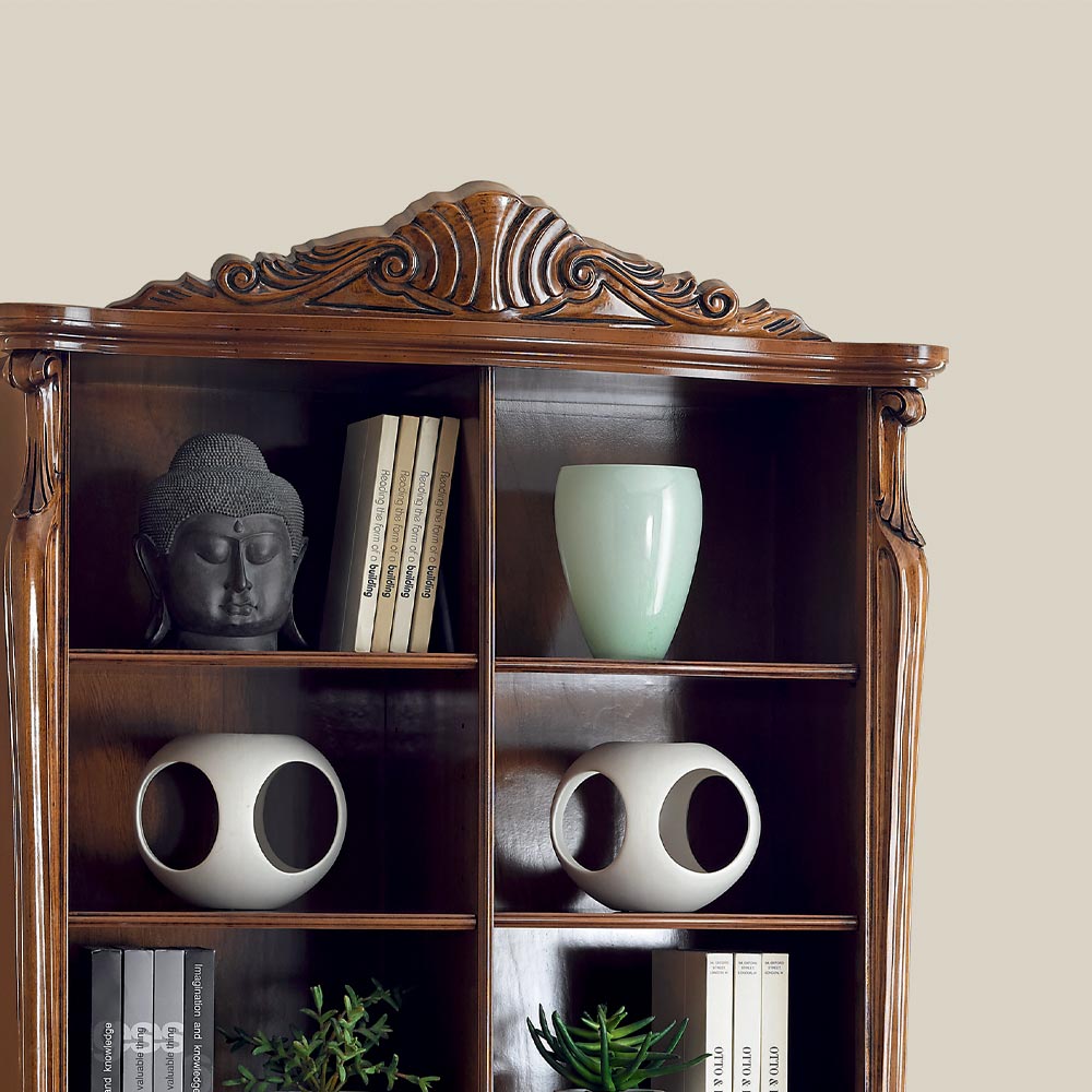 Elegant classic style bookcase made of inlaid Bassano walnut wood . This bookcase has 8 practical compartments and two doors, all crowned by the original coping. Ā  A unique and refined complement, completely made in Italy by skilled master craftsmen , masters of art who finish each complement with wisdom and taste for elegance. The production is carried out using fine materials , and performing the work by hand with the utmost care and professionalism that distinguishes Made in Italy products.