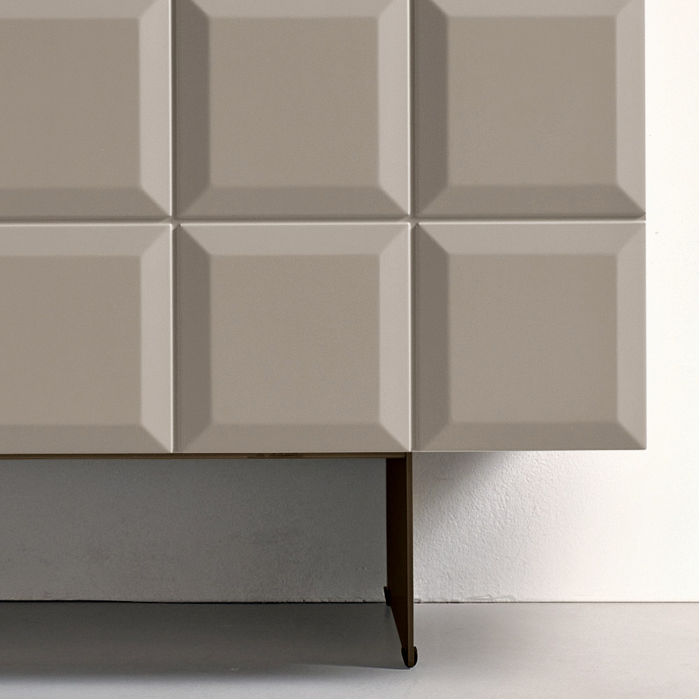 Made in Italy designer sideboard with embossed geometric doors and metal base