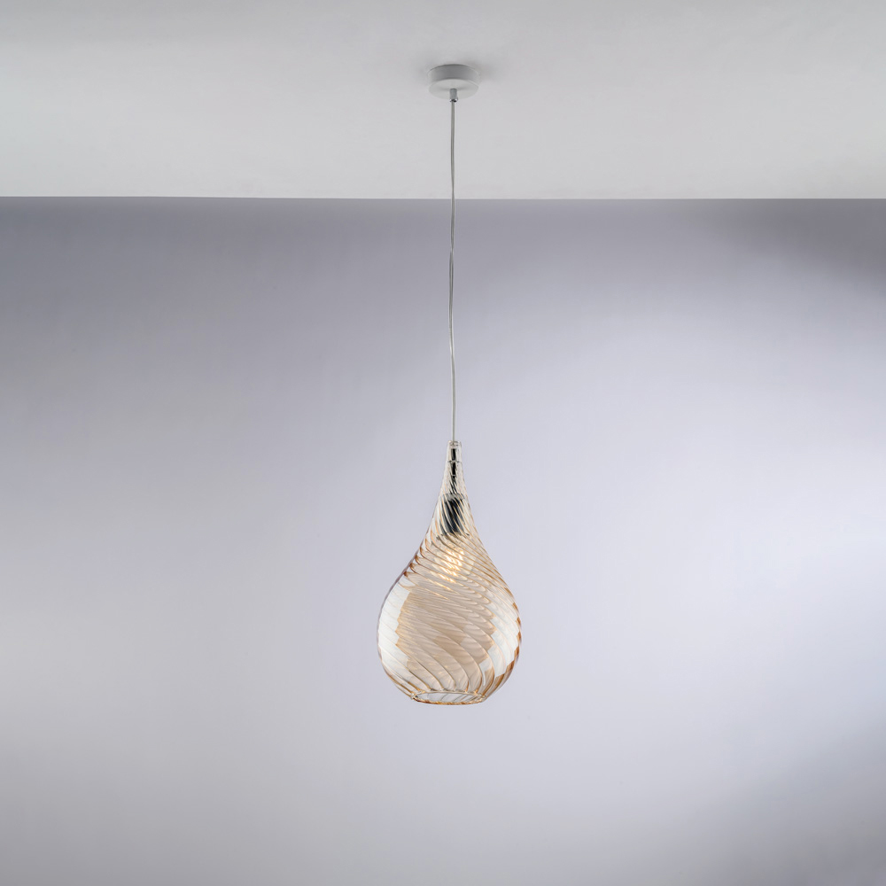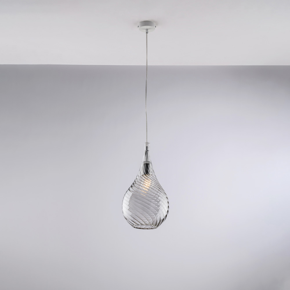 Available in Transparent , Amber , or Gray finishes, this pendant adapts to a variety of furnishing styles: bright and airy in the transparent version, warm and enveloping in amber, modern and elegant in gray. Perfect for kitchens, islands, dining tables, hallways, reading nooks, and designer contract spaces , it can be used individually or in multiple compositions.