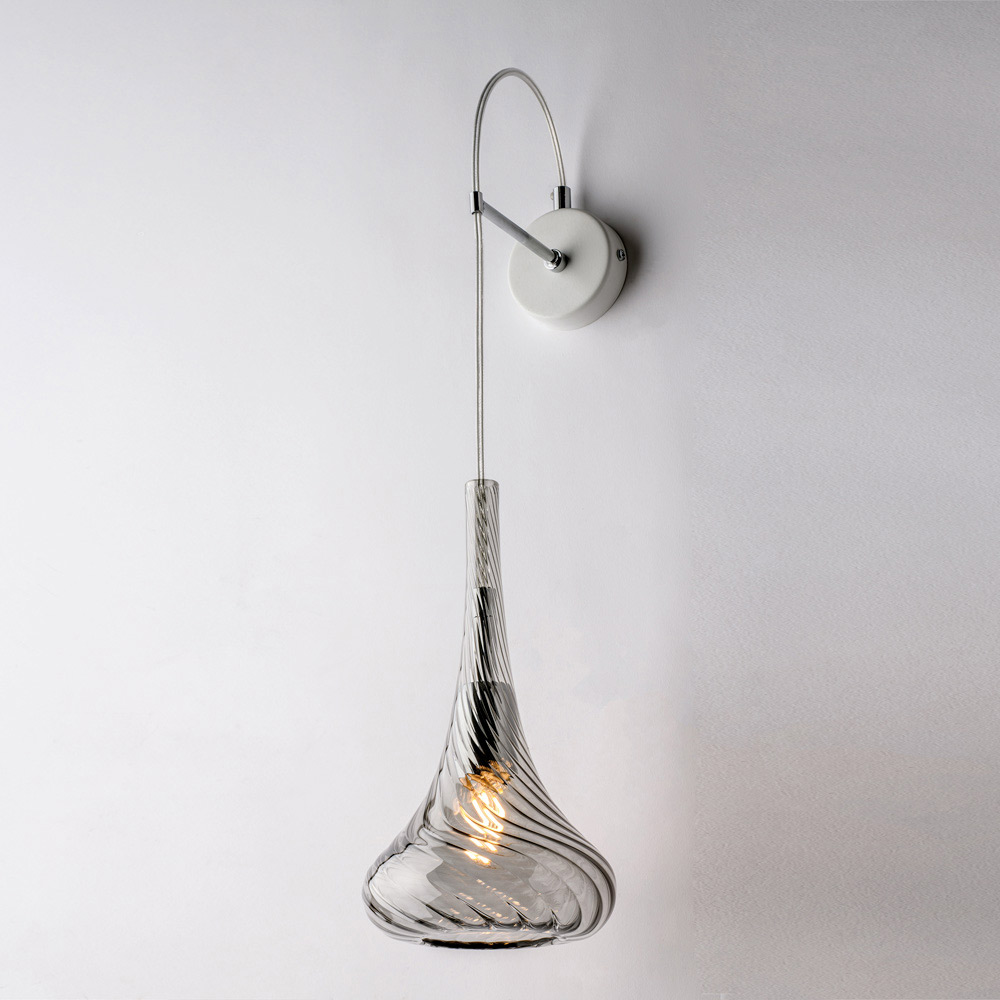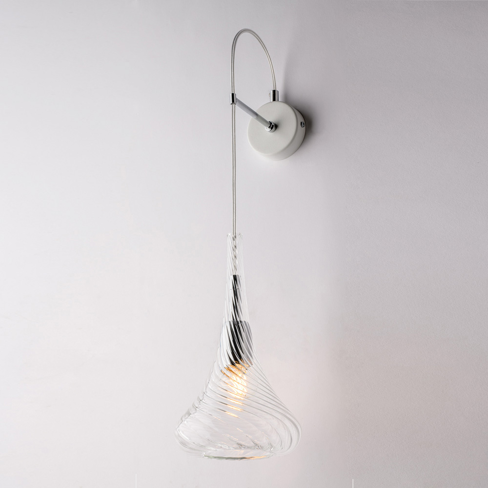 Elegant and lightweight, this handcrafted iron wall light with Pyrex glass is a contemporary lighting solution, designed to enhance your walls with subtle style. The sinuous and delicately crafted Pyrex glass pendant diffuser creates a refined visual effect and diffuses a soft, welcoming light.