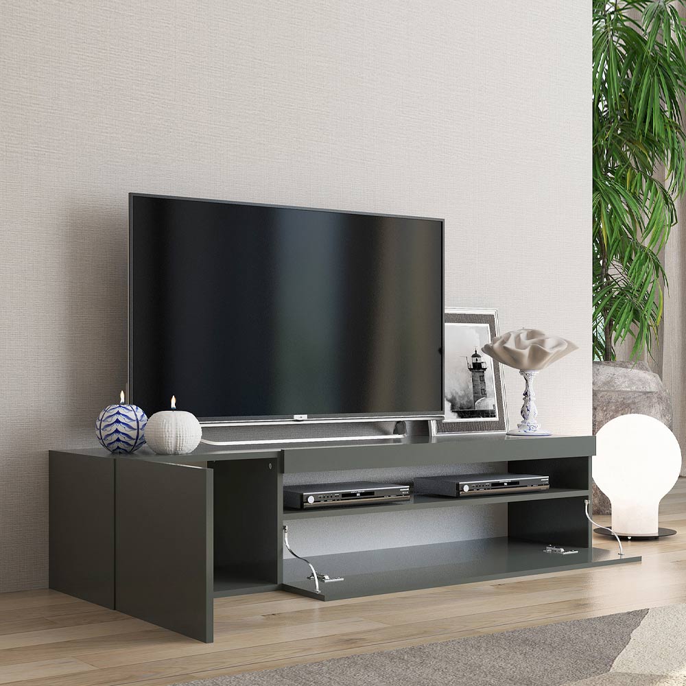 Low TV stand in wood of various design finishes for lounge made in Italy.