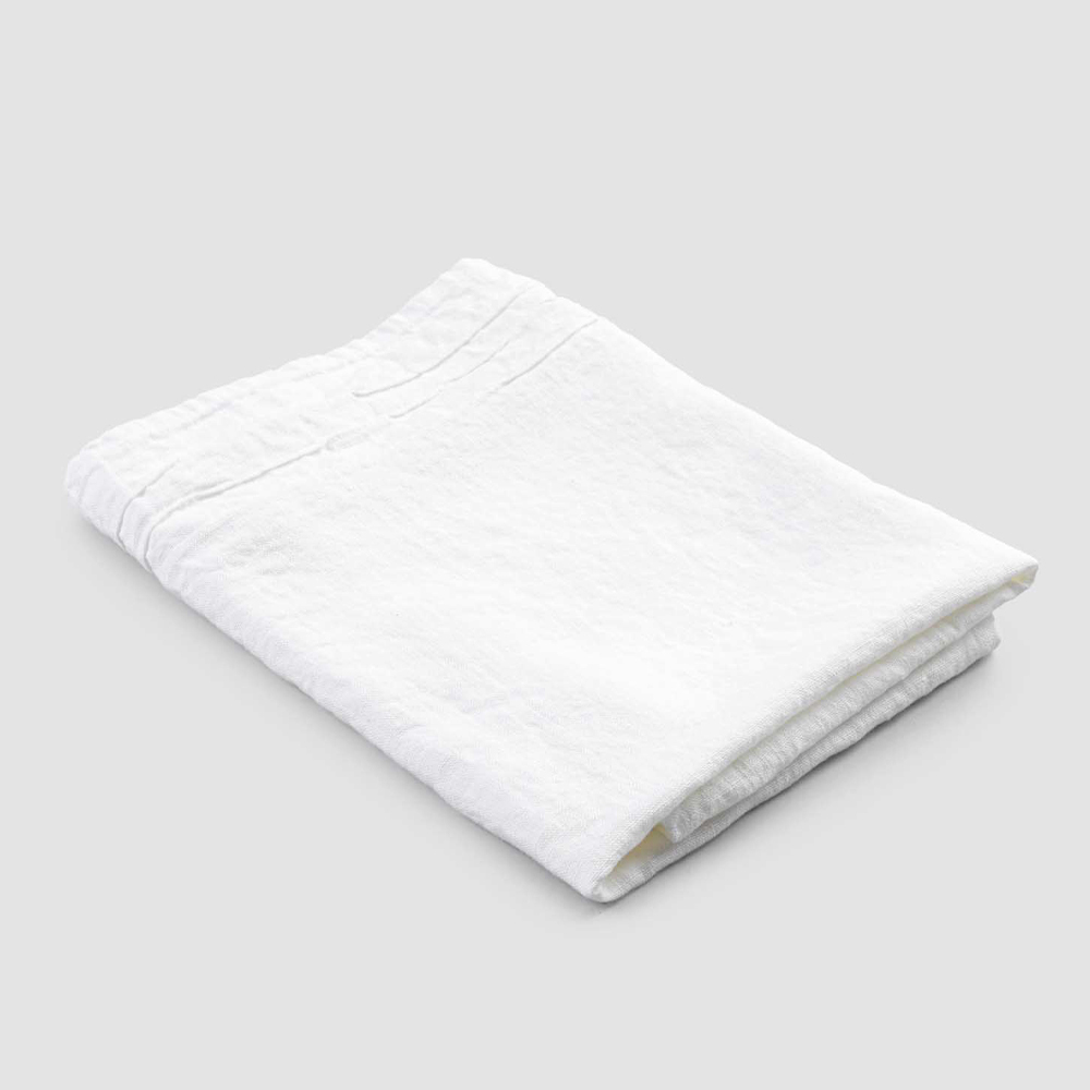 The value of tradition joins the modern lifestyle with the white heavy linen bath towel with a stitched pleat border.