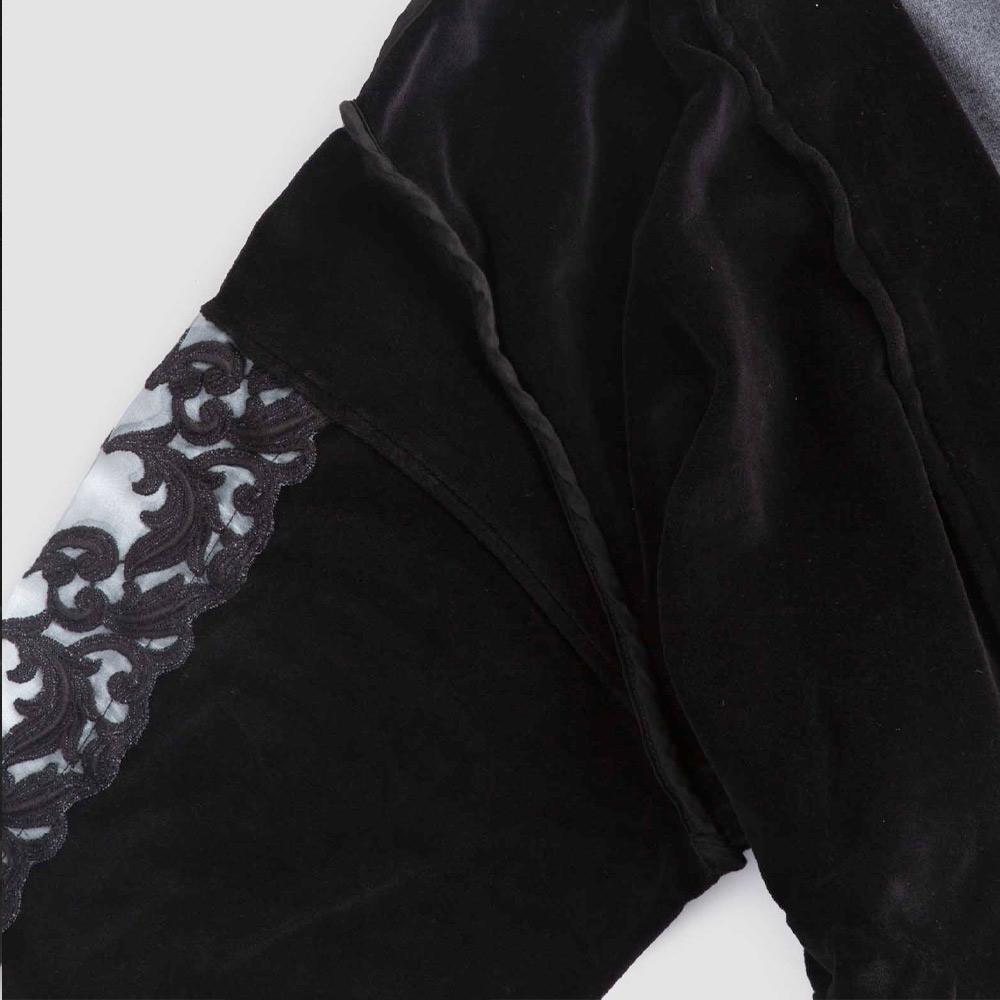 Black chenille robe or kimono with Farnese lace, elegance made in Italy.