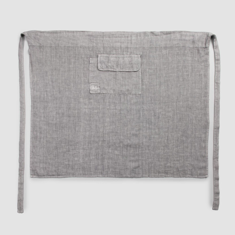 The value of tradition joins the modern lifestyle with this anthracite grey linen kitchen apron in a low pub style with a pocket.
