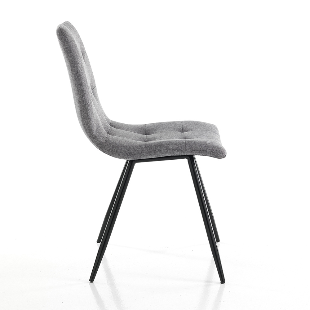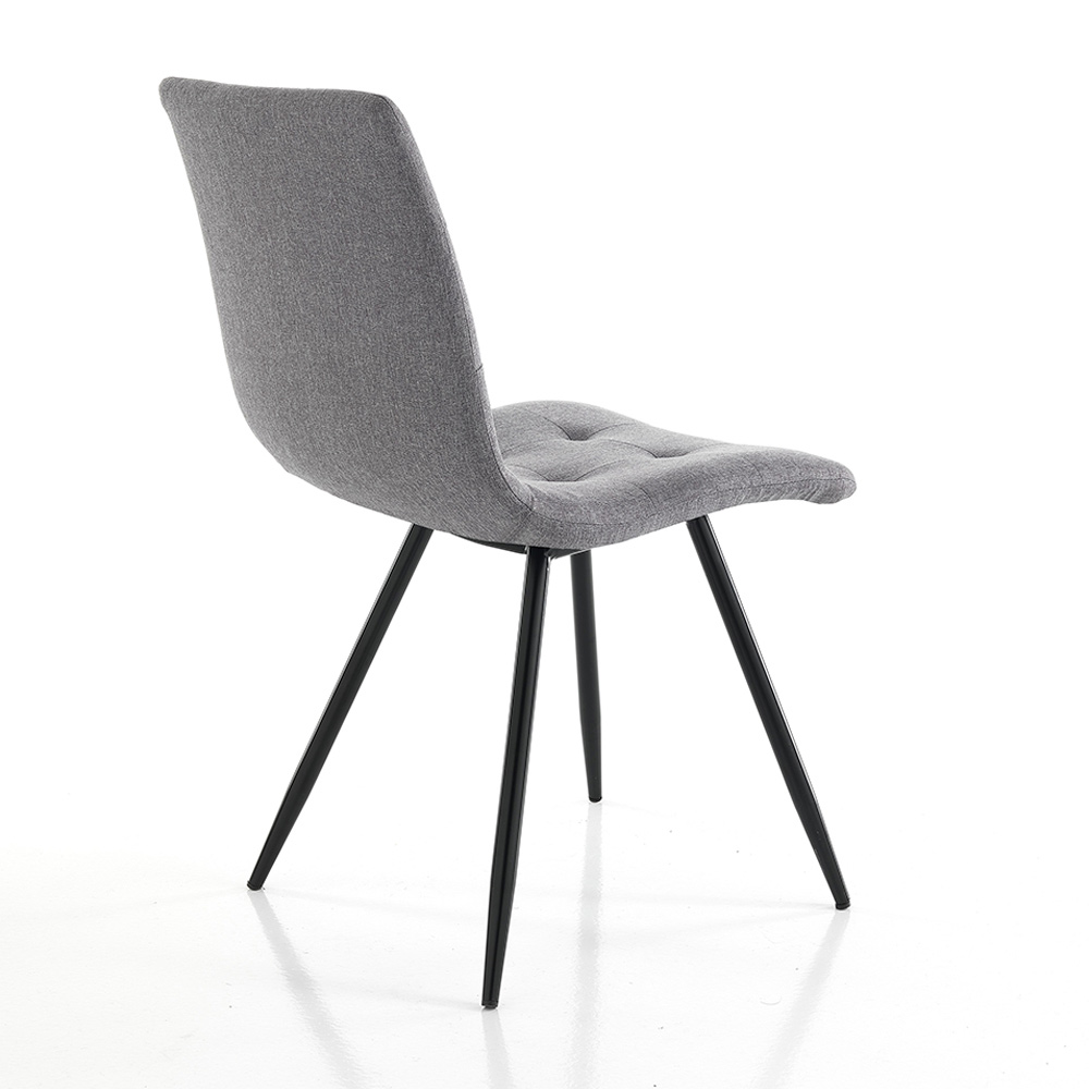 Kitchen or dining room chair with legs made of matt black painted metal and padded seat covered in gray fabric . It matches perfectly with all modern furnishing styles, from the most minimal to the most refined, giving elegance to the room without taking your eyes off the dining table which represents the focal point of the room but creating together with it a wonderful harmony of styles for a original result, refined and with a strong modern personality .