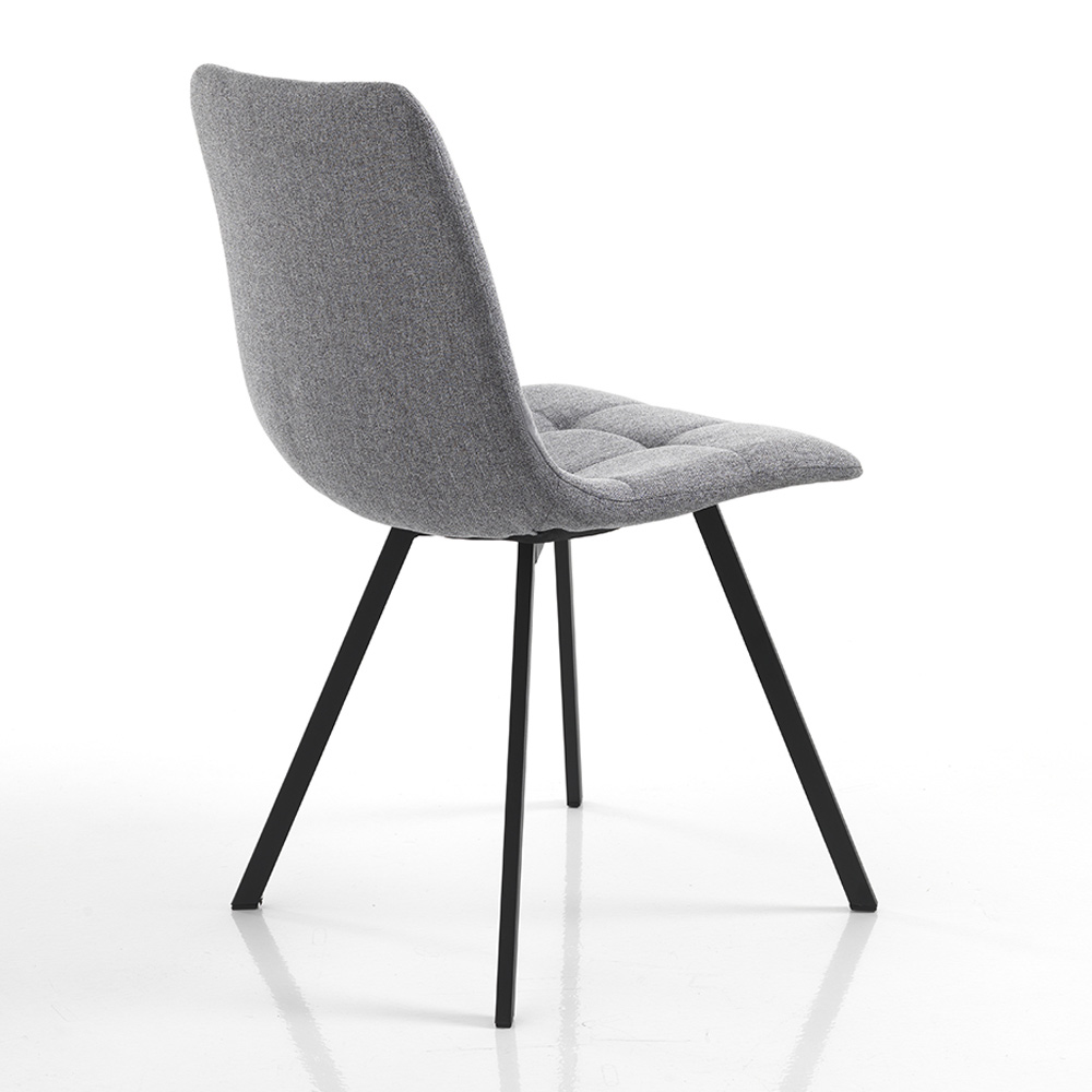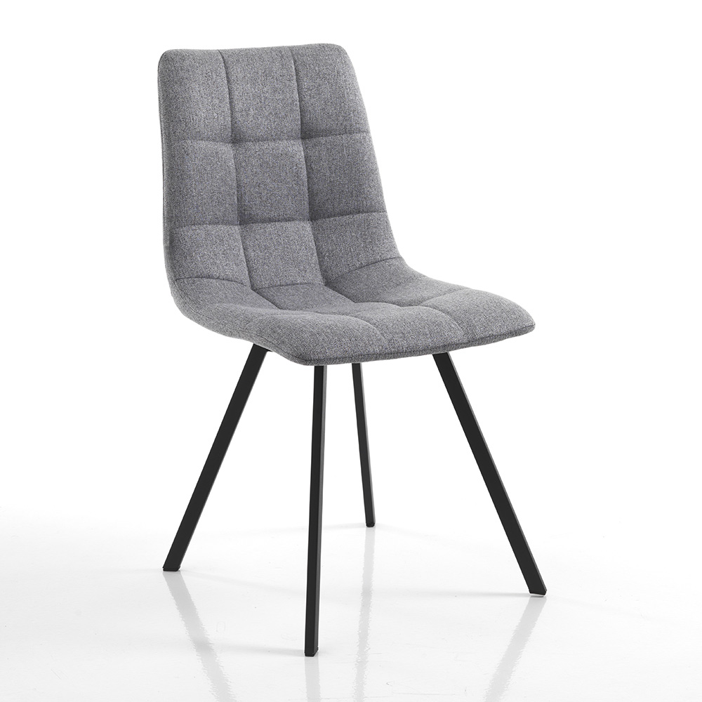 Kitchen chair with structure made of matt black painted steel and seat entirely covered in gray fabric . Ideal to place in the dining room and kitchen but also within contract spaces such as bars and restaurants thanks to the elegant and refined design and its versatility of use. The shapes that punctuate the figure together with the soft padding offer a particularly welcoming and comfortable seat to ensure wonderful moments dedicated to relaxation.