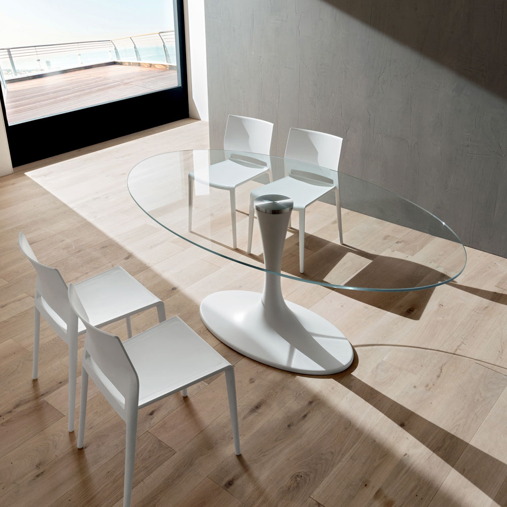 original shapes, an extremely creative furnishing solution is born that makes every dining room or kitchen an almost futuristic environment. What characterises its aesthetics, making it a unique product of its kind, is the synthetic marble base which, in addition to offering excellent stability, enriches it with its