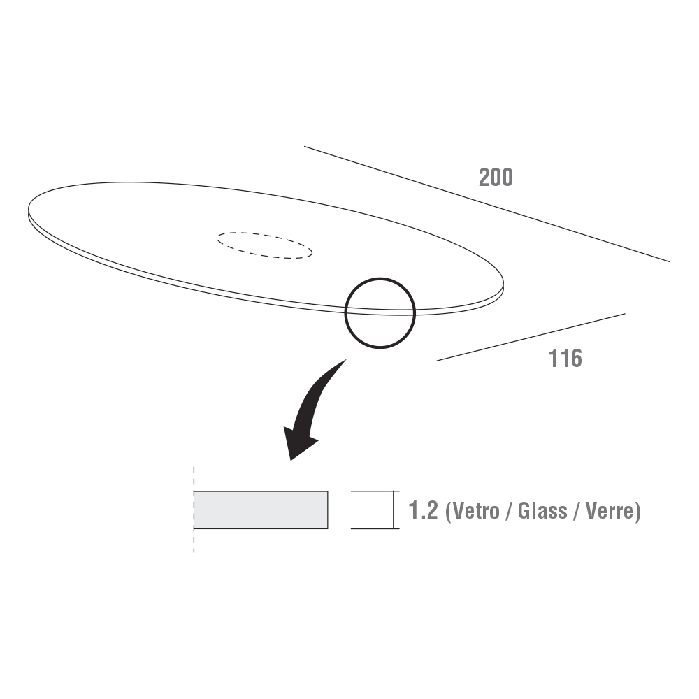 tempered glass (thickness 12 mm) glossy transparent finish with glued steel flange and base in