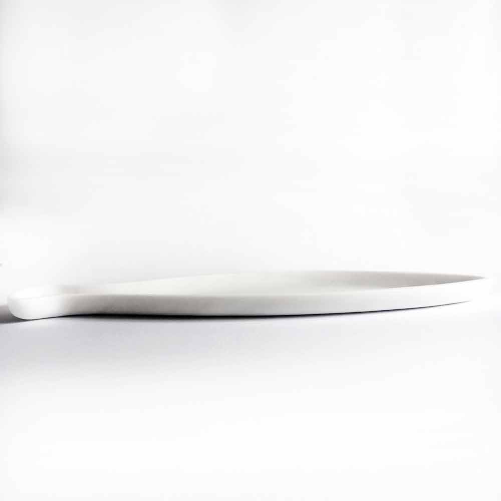 Elegant and exclusive shaped kitchen tray handmade in Italy in white Carrara marble . An idea of class with an original shape that enriches every dining table in a refined and refined way. Ideal for serving any course during lunches and dinners with chinas, its shape also makes it perfect as a practical pocket emptier to be placed at the entrance or as a simple decorative element capable of enriching any space in the house with personality.