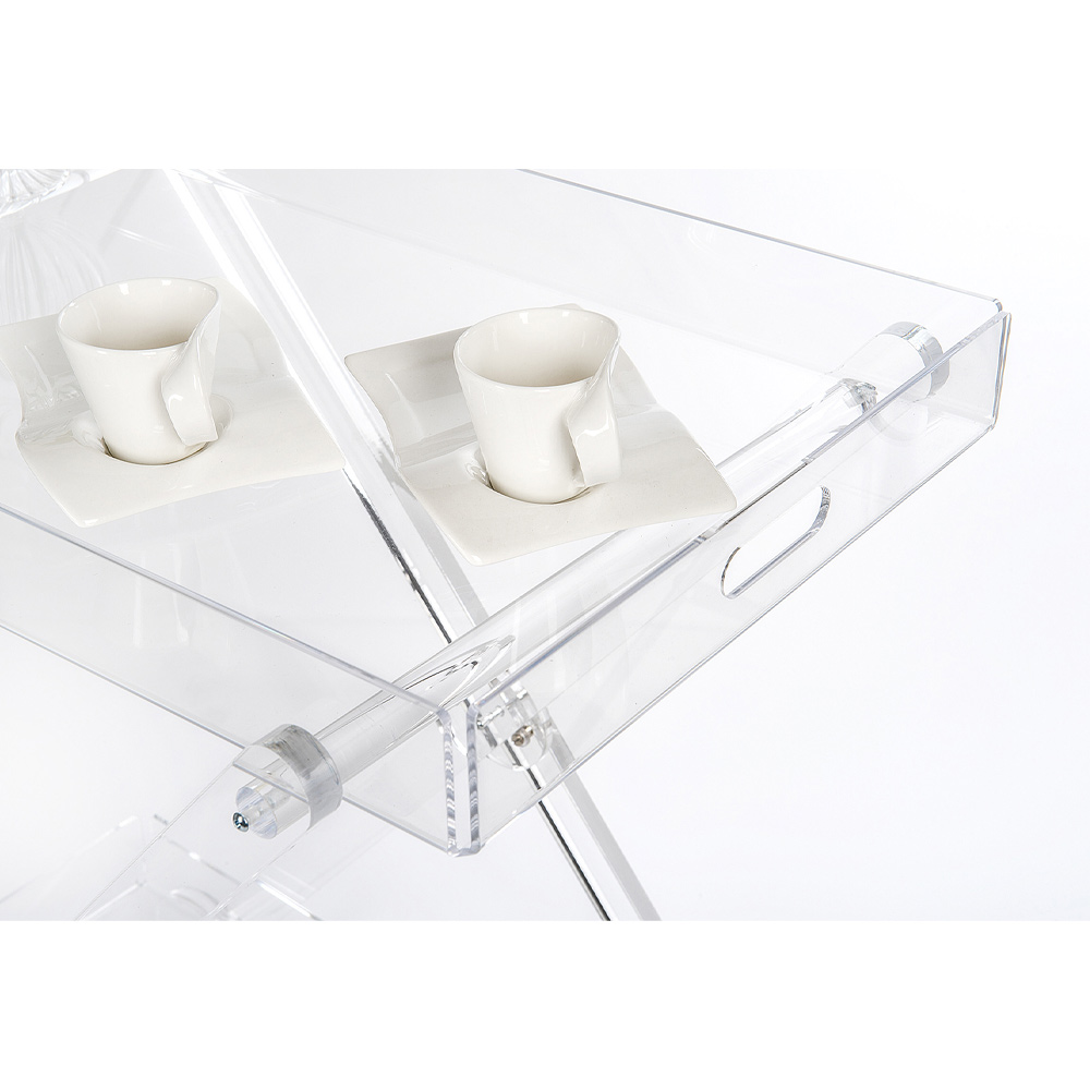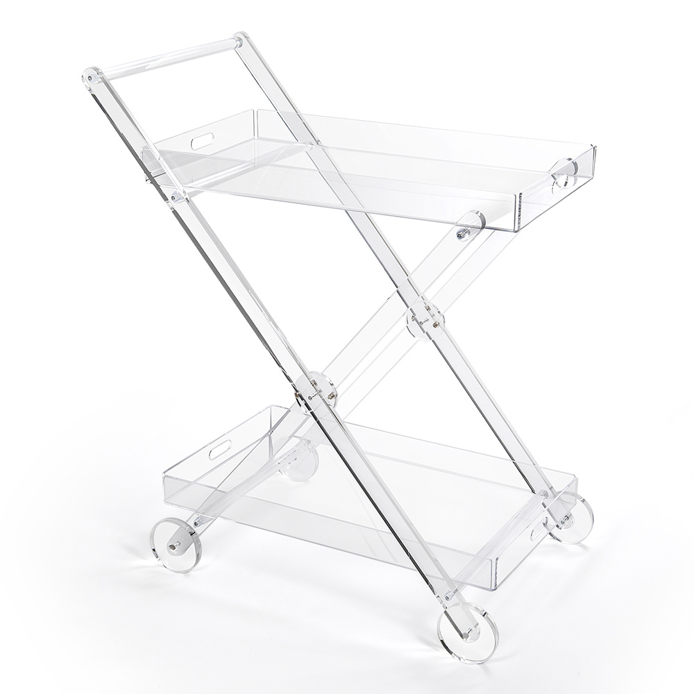 Kitchen food trolley in transparent plexiglass or with wood, 4-wheel design made in Italy.
