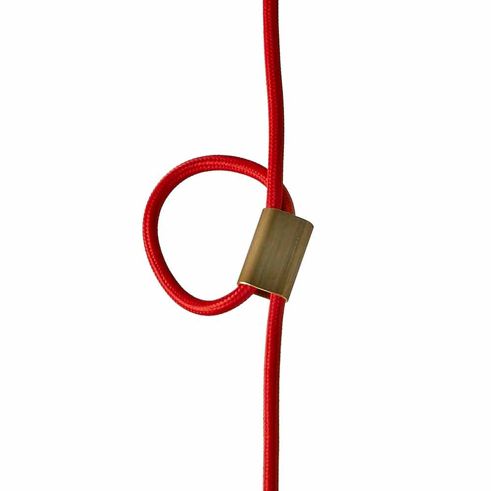 Made of green ceramic and beech wood with red cloth cable and brass cable clamp.