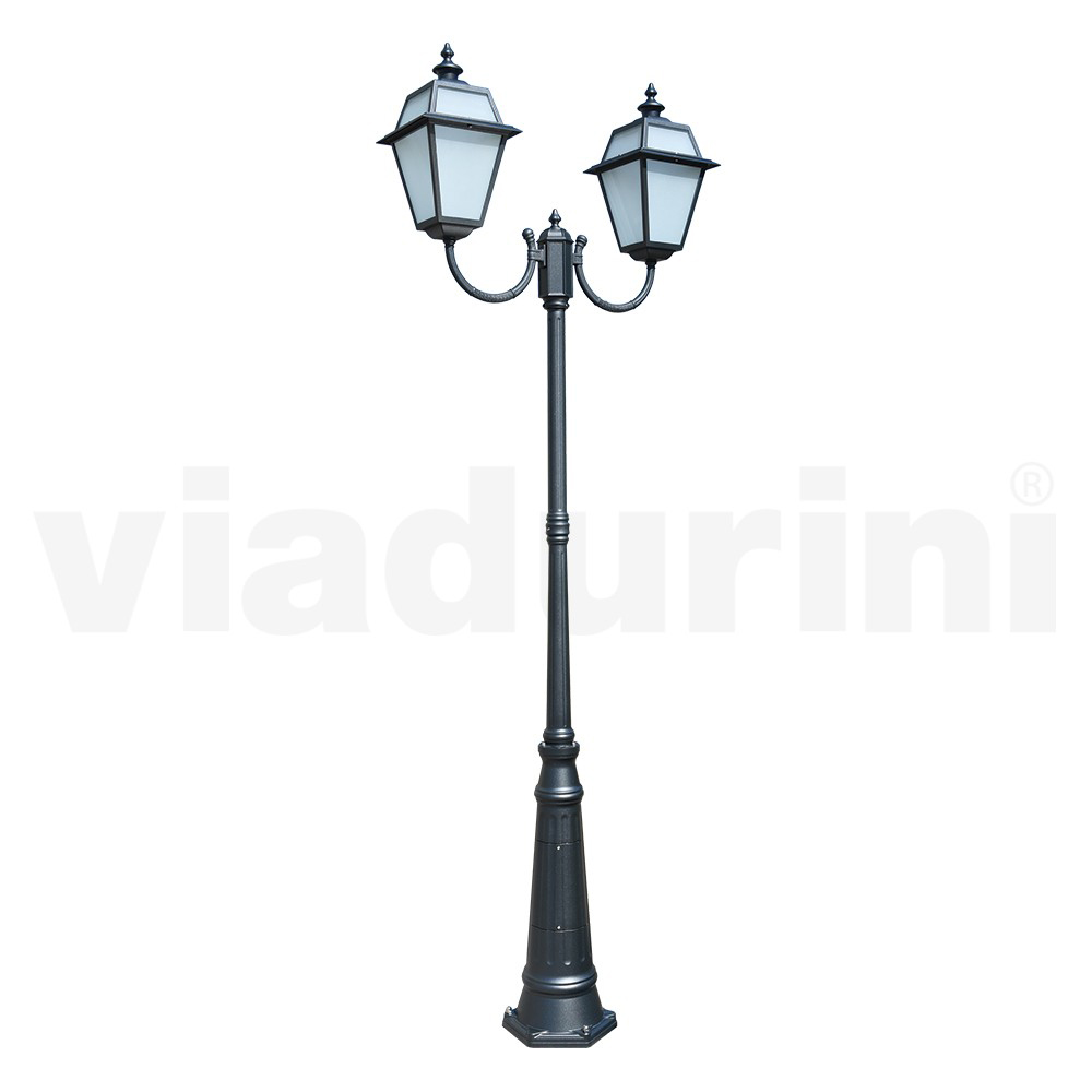 Vintage 2-light lamppost in aluminium and glass Made in Italy.