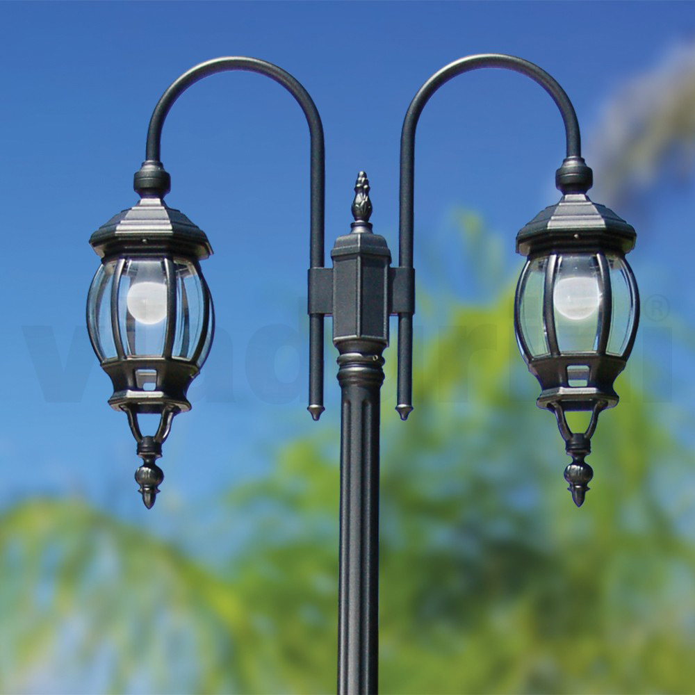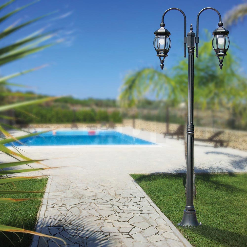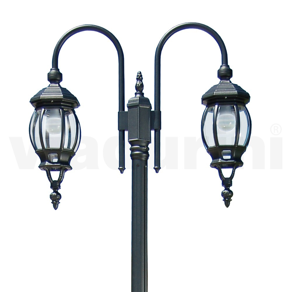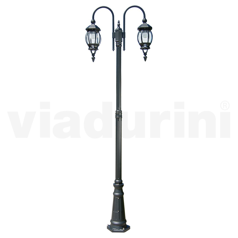 Vintage street lamp with 2 lights in grey aluminium and polycarbonate Made in Italy.