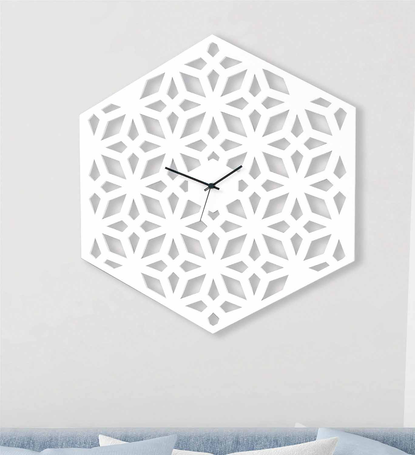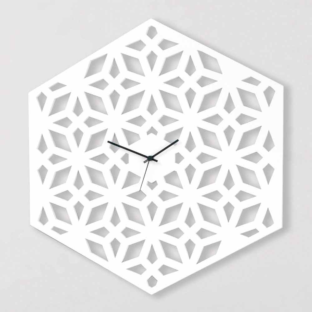 Large hexagonal clock of great impact thanks to the colours and details of which it is made, entirely in
