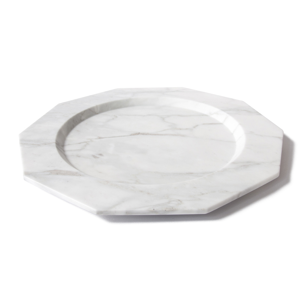 This flat serving plate is characterized by its decagon shape and the elegance it releases and which it gives both on the table and as a decorative object.