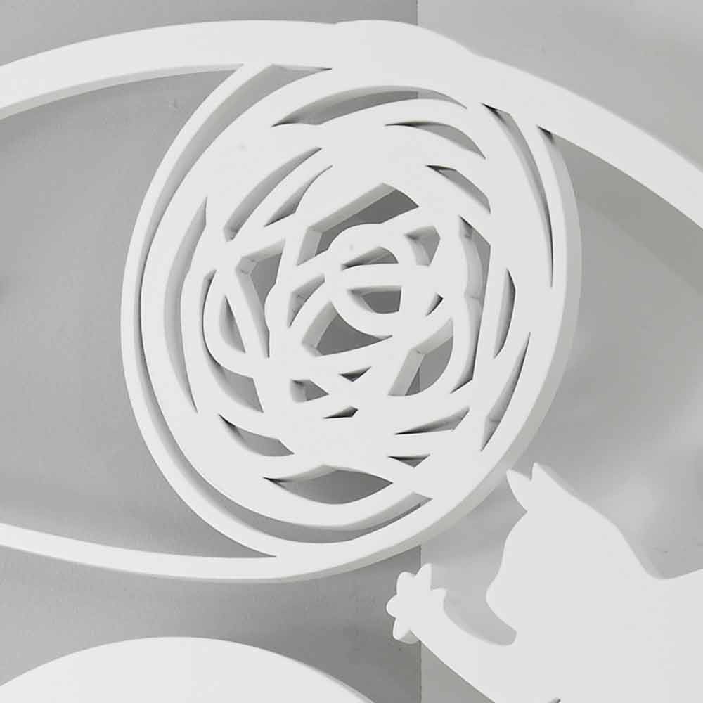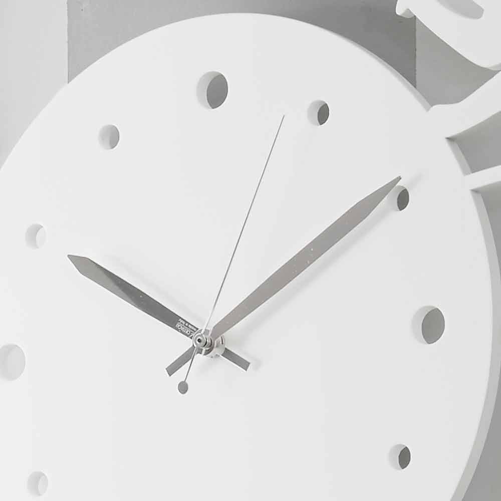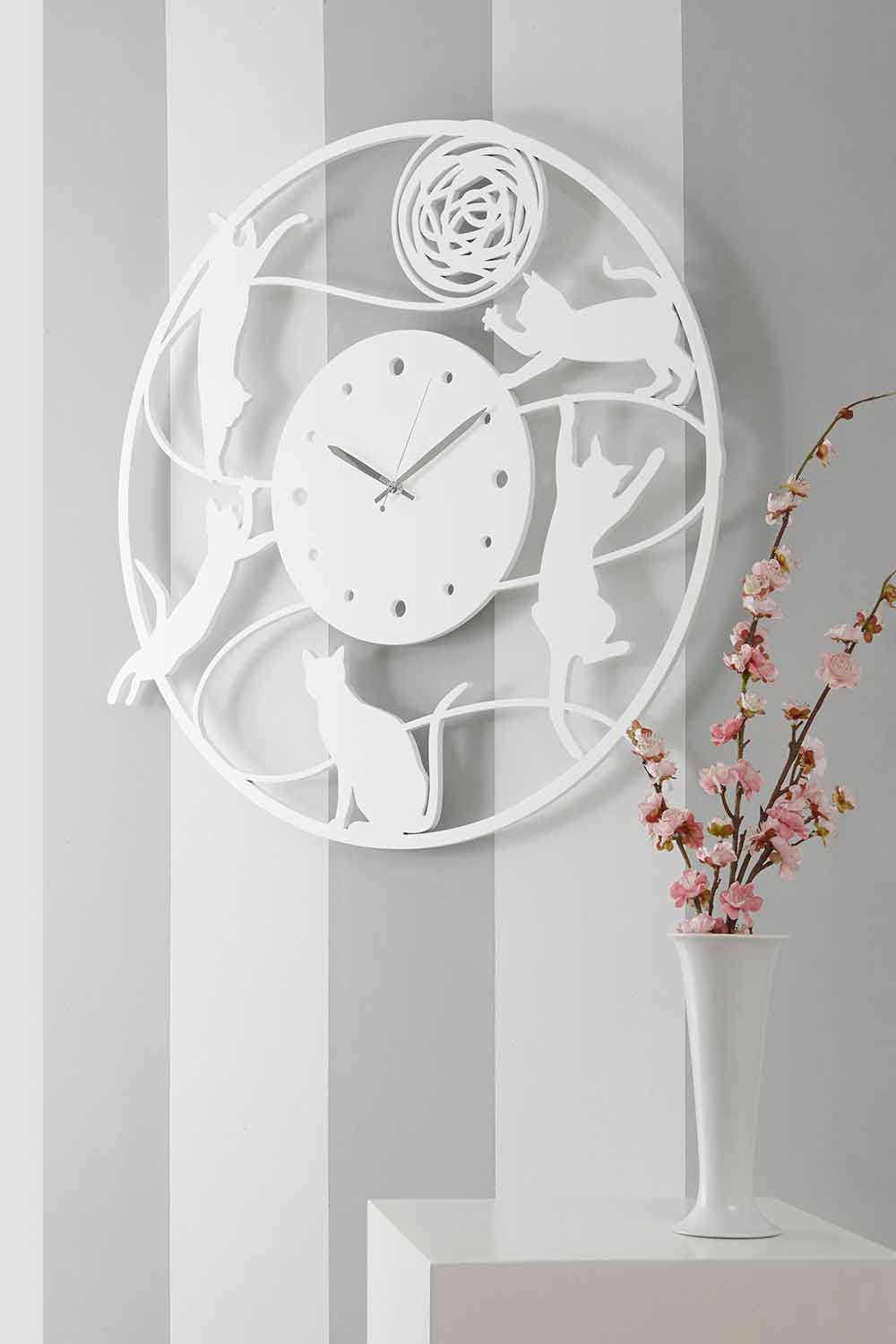 Large and original wall clock with a modern round design, in white, black or grey wood, with kittens, made in Italy.
