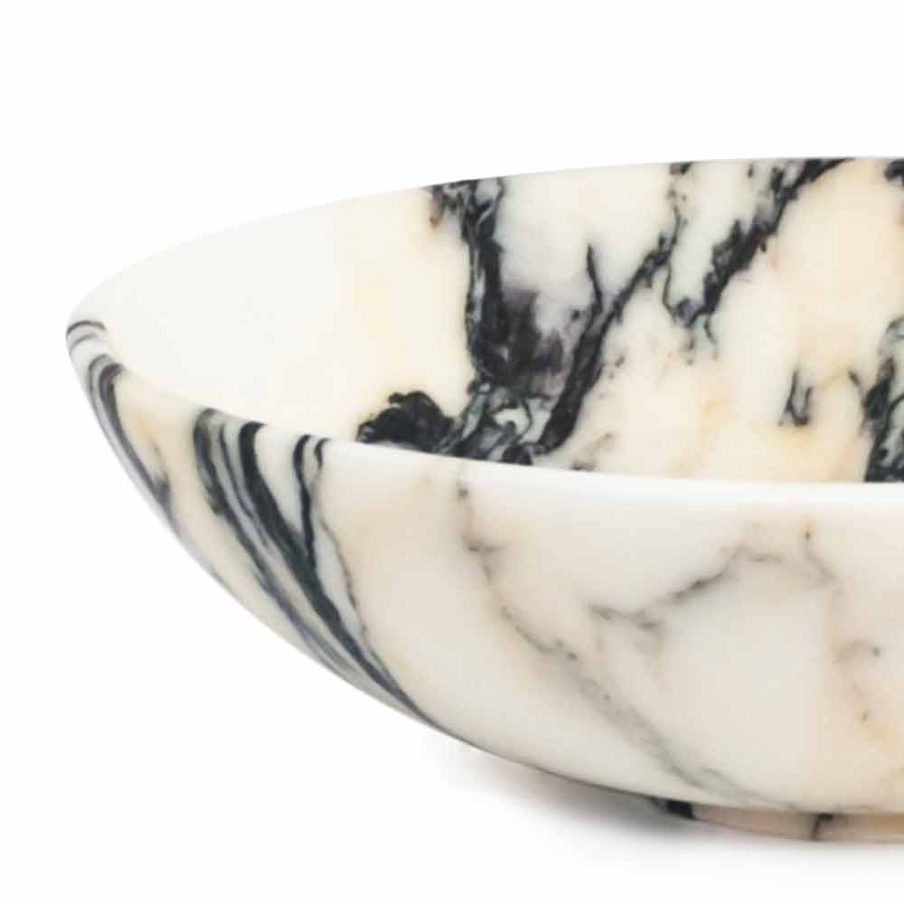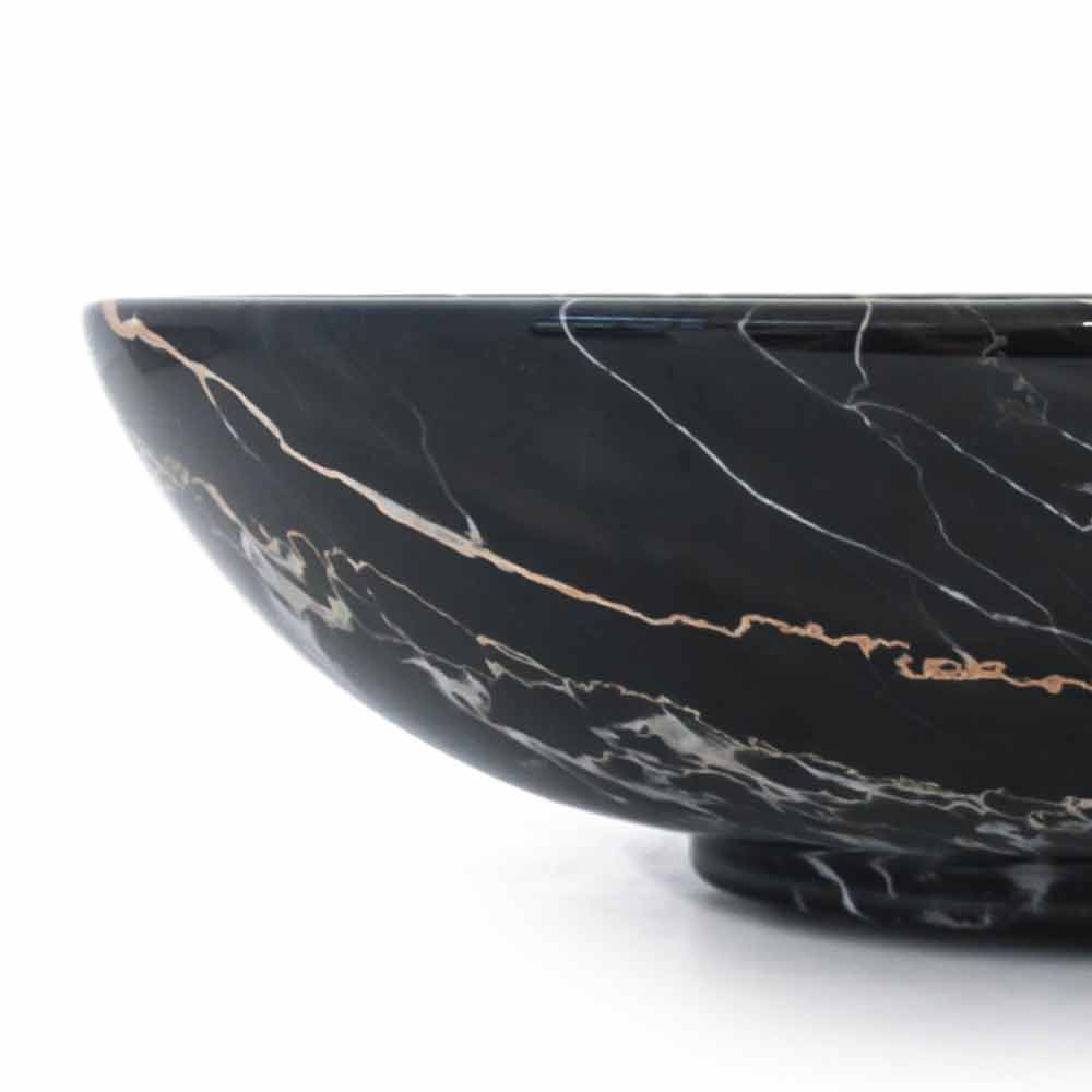 Elegant large round fruit bowl Ā it is characterized by the precious marble with which it is made. It is a unique piece as each block of marble used differs from the others for veins and shades. Available in two variants of marble, Portoro and Paonazzo, Glacer is handcrafted by professionals specialized in marble processing for generations.