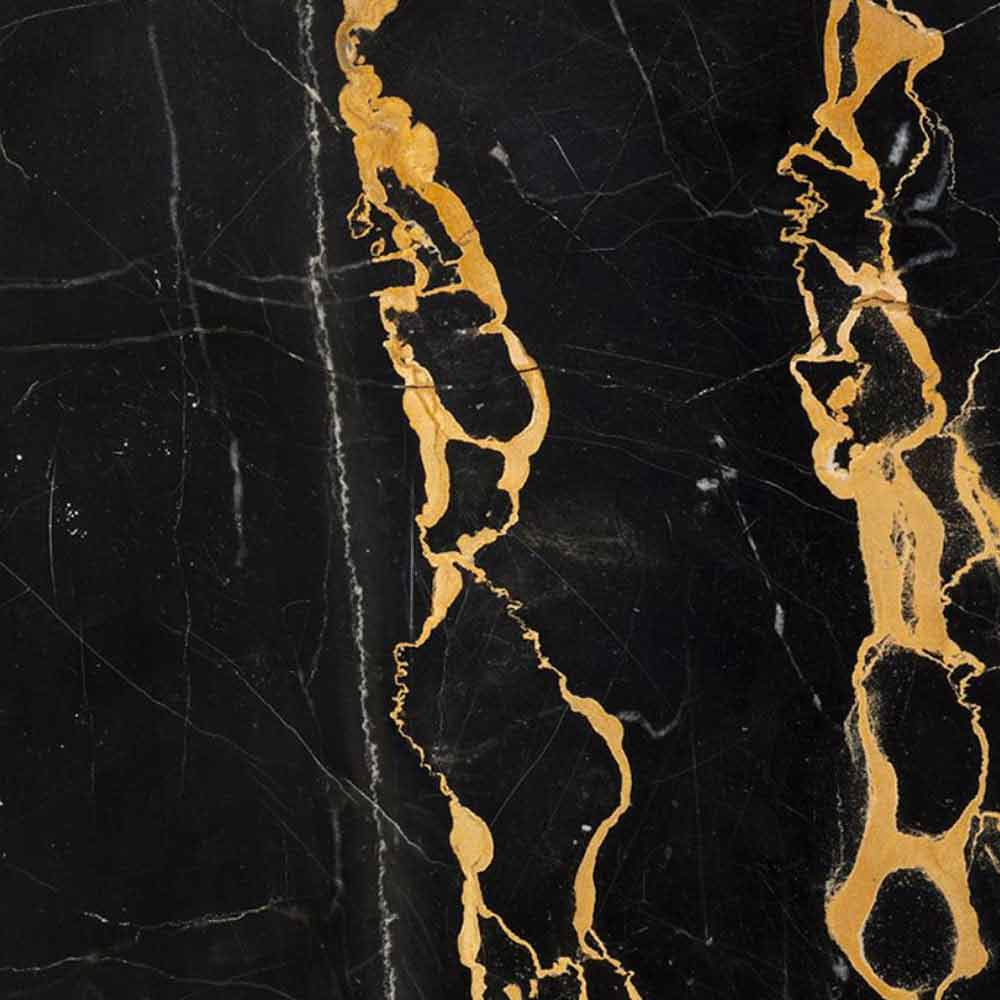 Portoro is a fine variety of marble characterized by an intense black background with golden shades and streaks while Paonazzo is a variety of high quality marble typical of the tradition and characterized by a butter-white background with veins from intense blue to orange.