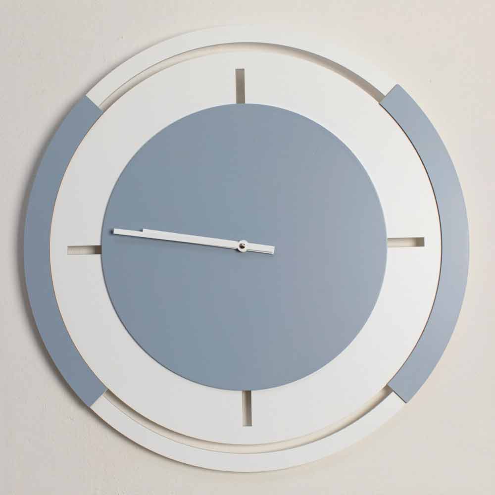 round clock is a classic that combines white with air force blue, for a combination of colours and shapes that together form something unique.