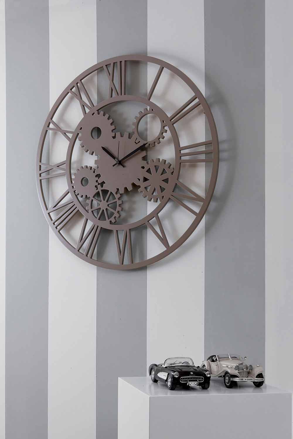 Round clock of large dimensions and of great impact thanks to the colours and details of which it is made, entirely in
