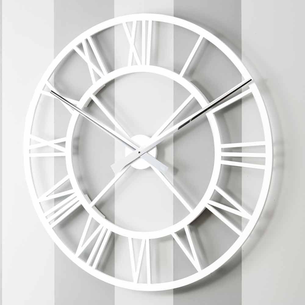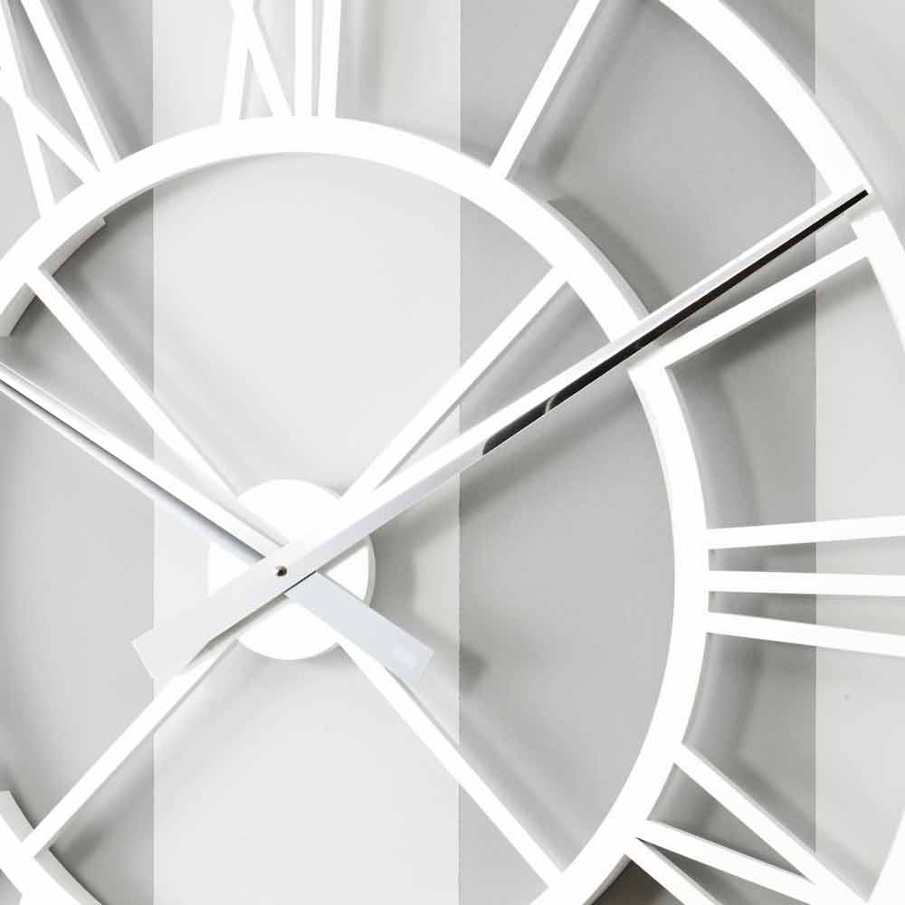 Large round shabby wall clock, design in white, grey or dove grey wood, made in Italy.