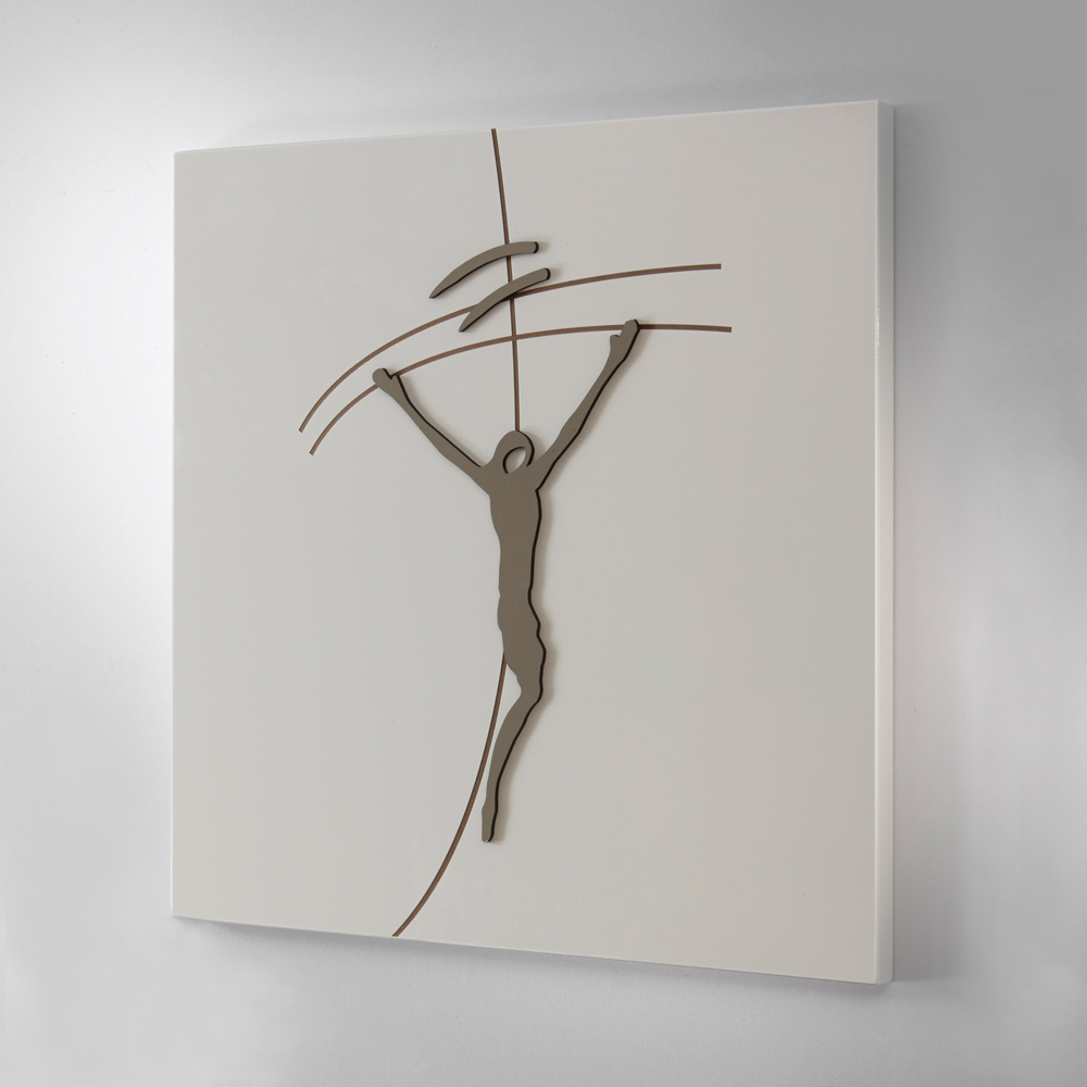 Simple and essential queues characterise the depiction of the crucifixion of Jesus Christ with a new and original interpretation of the cross that makes this product unique in its kind. The skilled hands of Italian master craftsmen have created this painting paying attention to every single detail.