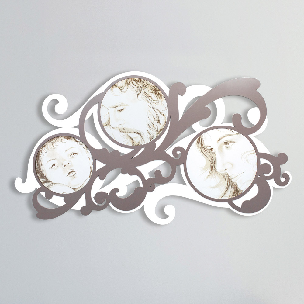 A headboard depicting the lineage thanks to laser marking, which shows the features of the faces. Matt white lacquered wooden panel with laser marking, a special technique that creates a bas-relief on the materials. The original hand-drawn design combined with laser technology gives life to this work engraved on multiple levels.