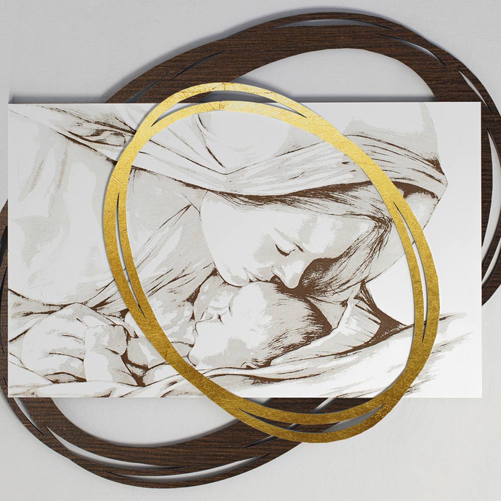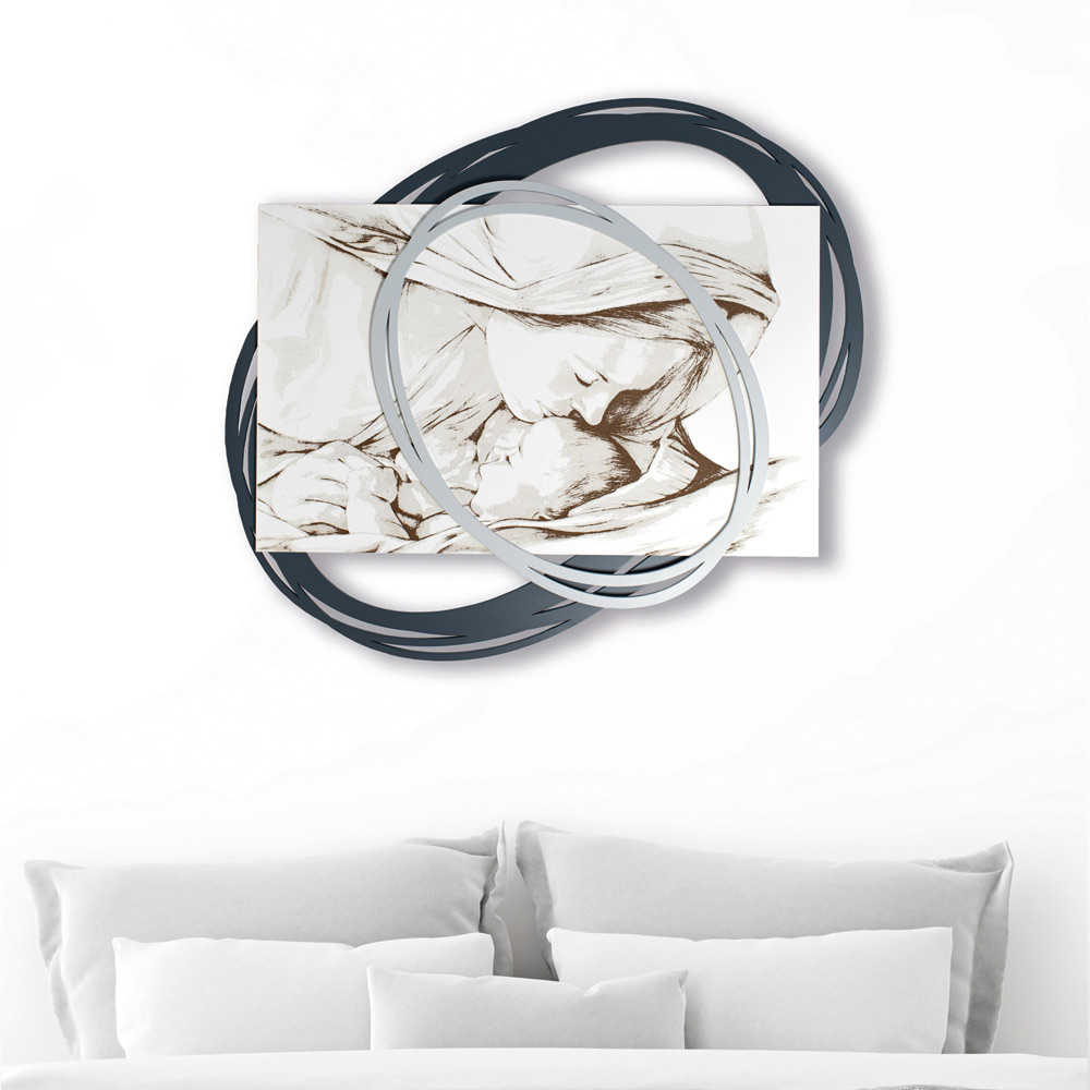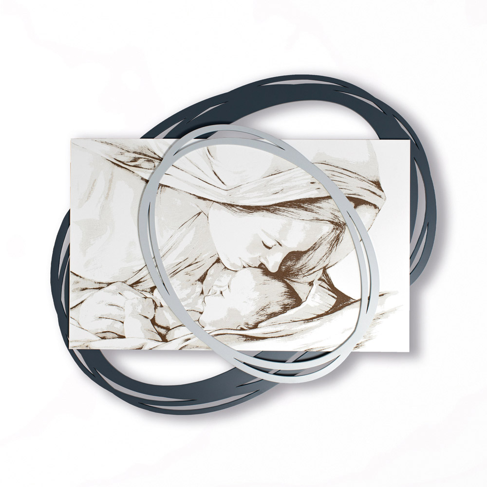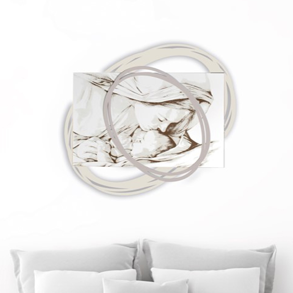 This painting was designed to maximise the tenderness of the kiss that the Madonna gives to Jesus. Simple but precise queues are born from the hands of Italian master craftsmen who have created this design with care and dedication, making it unique and inimitable. This headboard combines the quality of materials and techniques with the possibility of choosing the finishes that best suit every design need.