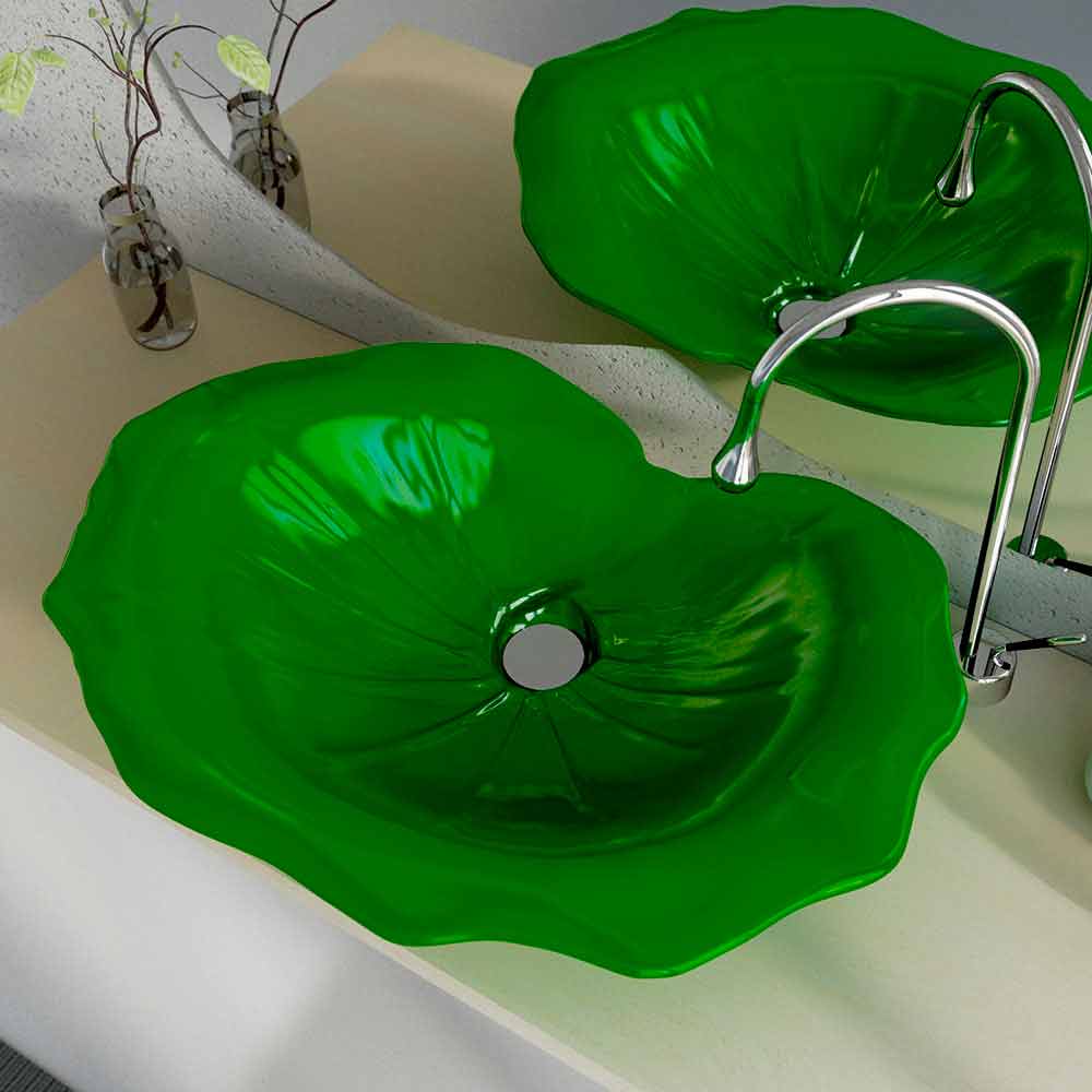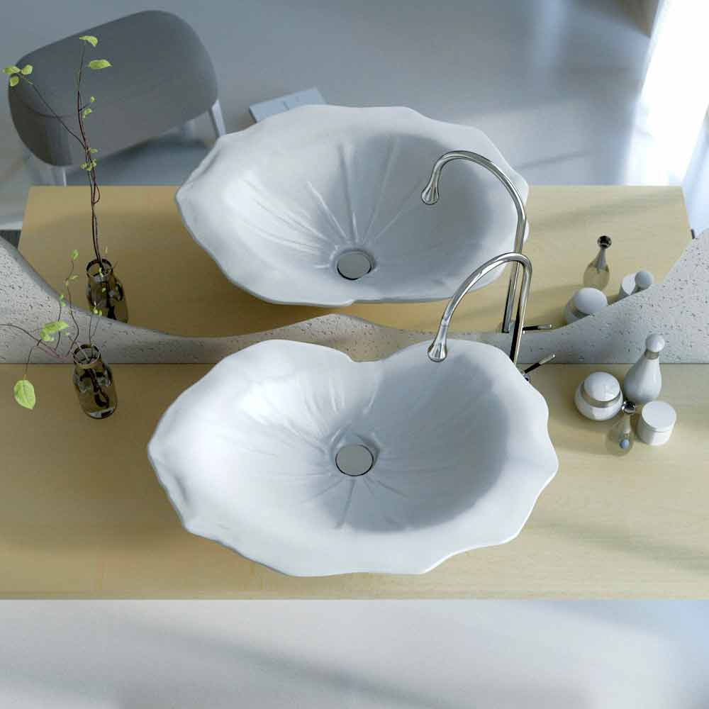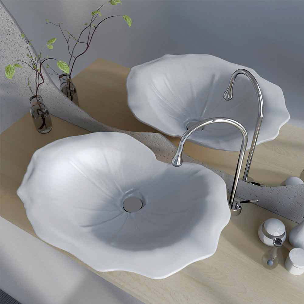 Modern design countertop washbasin in the shape of a Faruglium leaf