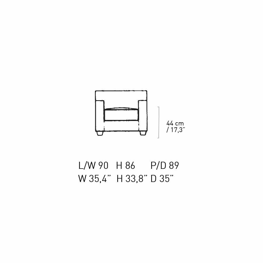 Armchair with internal wooden structure padded with polyurethane foam and polyester fibre lining, seat cushion in sterilized goose down,