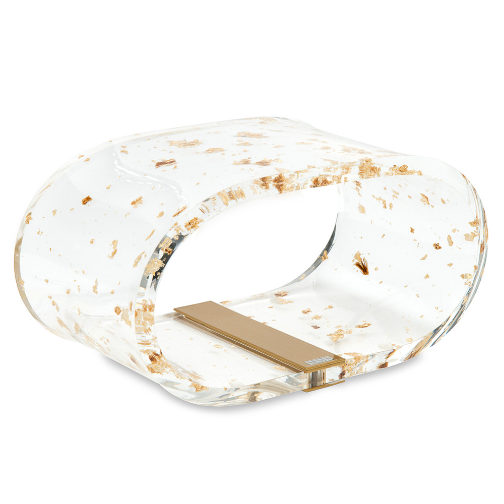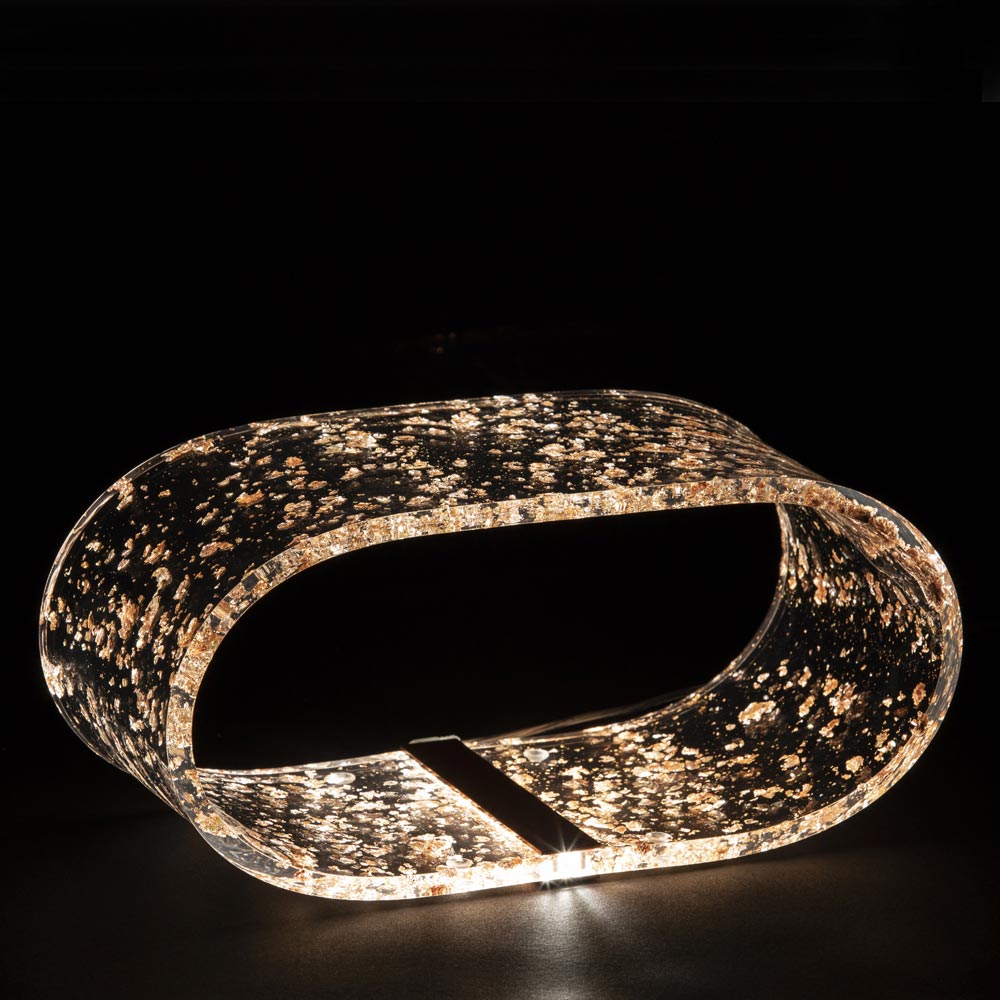 Table lamp in acrylic crystal and gold, silver or copper leaf, 2 sizes made in Italy.