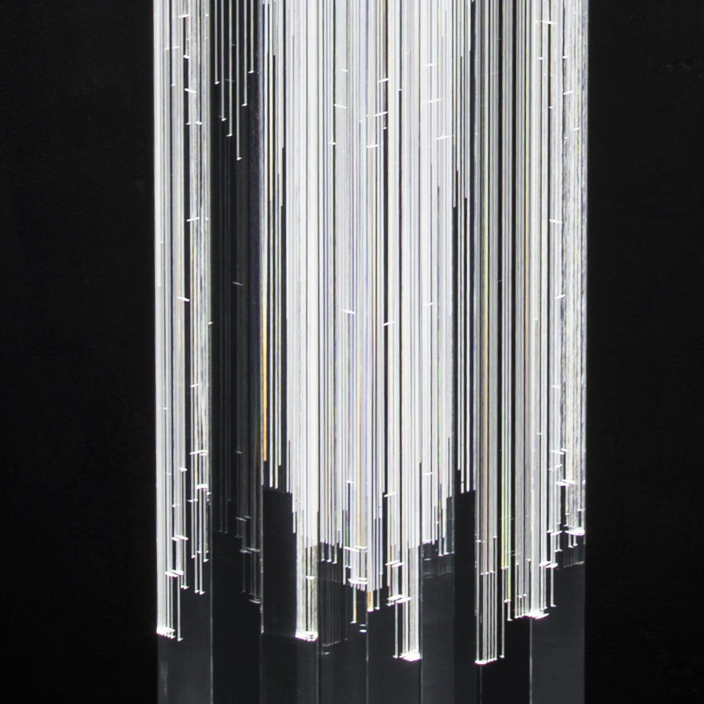This floor lamp is composed of unique blocks of acrylic crystal cut and engraved with laser technology and a base with the LED lighting body.