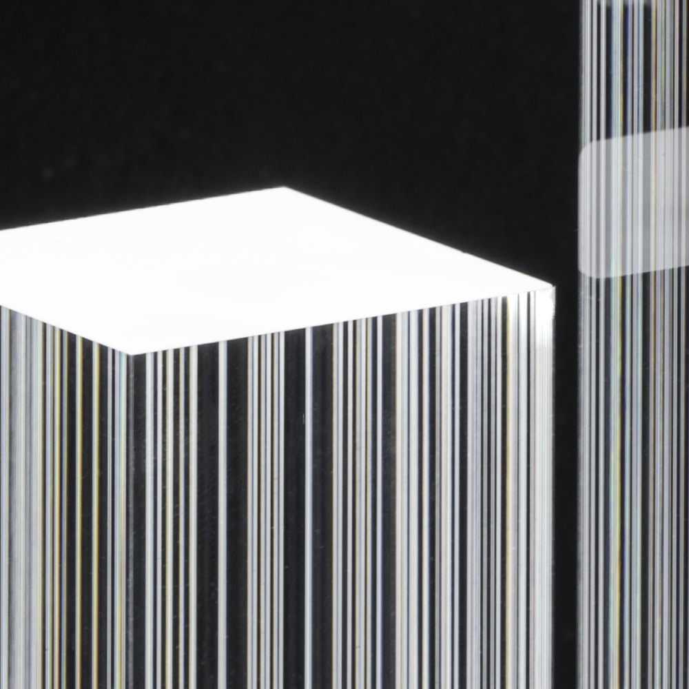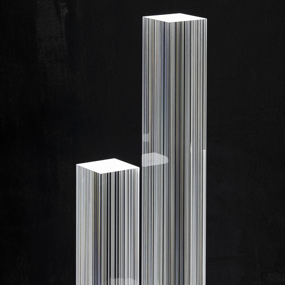 Triptych led floor lamp in laser engraved acrylic crystal made in Italy.